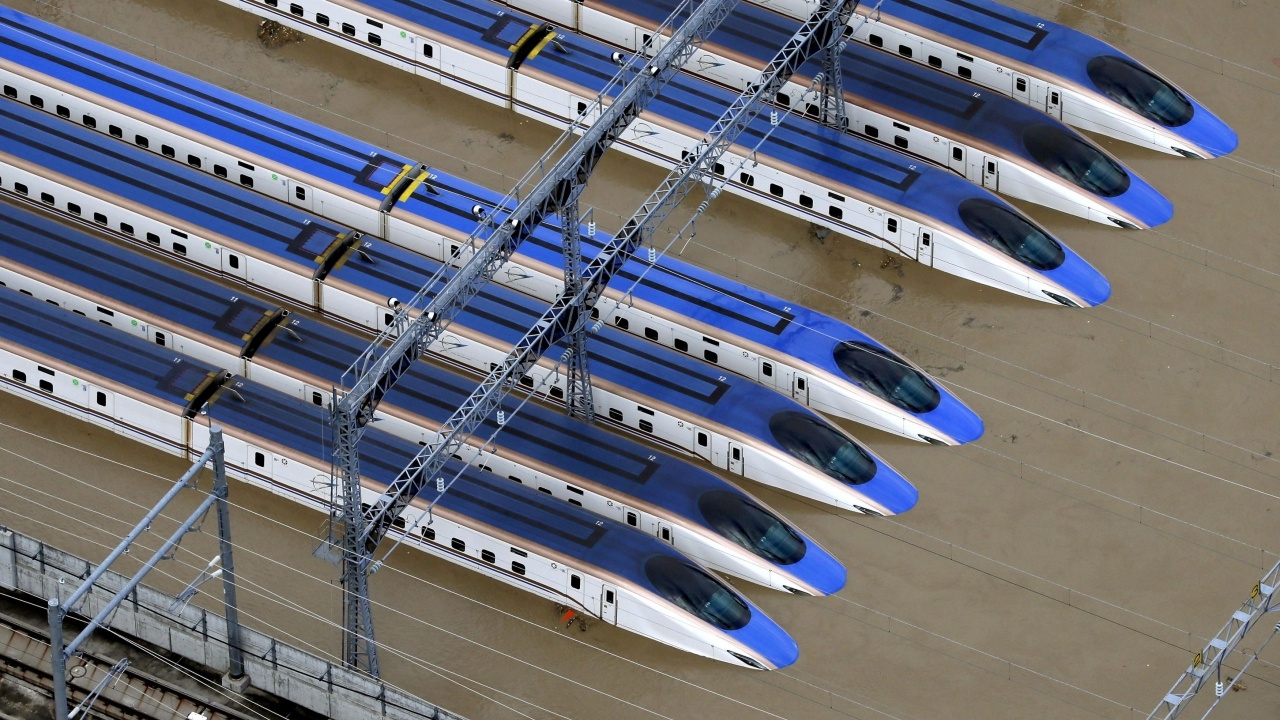 นอกจากนี้ น้ำยังไหลเข้าท่วมขบวนรถไฟหัวกระสุนชินคันเซ็น ที่จอดอยู่ในศูนย์ซ่อมบำรุง ได้รับความเสียหาย 10 ขบวน รวมทั้งหมด 120 โบกี้ ขณะที่กรมอุตุนิยมวิทยาของญี่ปุ่น ออกประกาศพายุไต้ฝุ่นฮากิบิส ได้อ่อนกำลังลงเป็นพายุหมุนนอกเขตร้อนในช่วงบ่ายที่ผ่านมา.