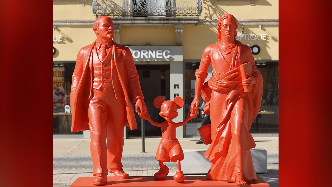 ประติมากรรมแกะสลักชื่อ “ฮีโร่, ลีดเดอร์ แอนด์ ก็อด” (Hero, Leader and God) ที่มีความหมายว่า “วีรบุรุษ ผู้นำ และพระเจ้า” สร้างจากฝีมือศิลปินชาวรัสเซีย นาม อเล็กซานเดอร์ คาซาลาโปฟ ติดตั้งไว้บนถนนในเมืองมง เดอ มาร์ซ็อง อยู่ทางตะวันตกเฉียงใต้ของฝรั่งเศส ซึ่งเป็นส่วนหนึ่งของธีมเกี่ยวกับตำนานในงาน “Sculptures of Mont de Marsan” ครั้งที่ 11 โดยงานมีขึ้นทุก 3 ปี.