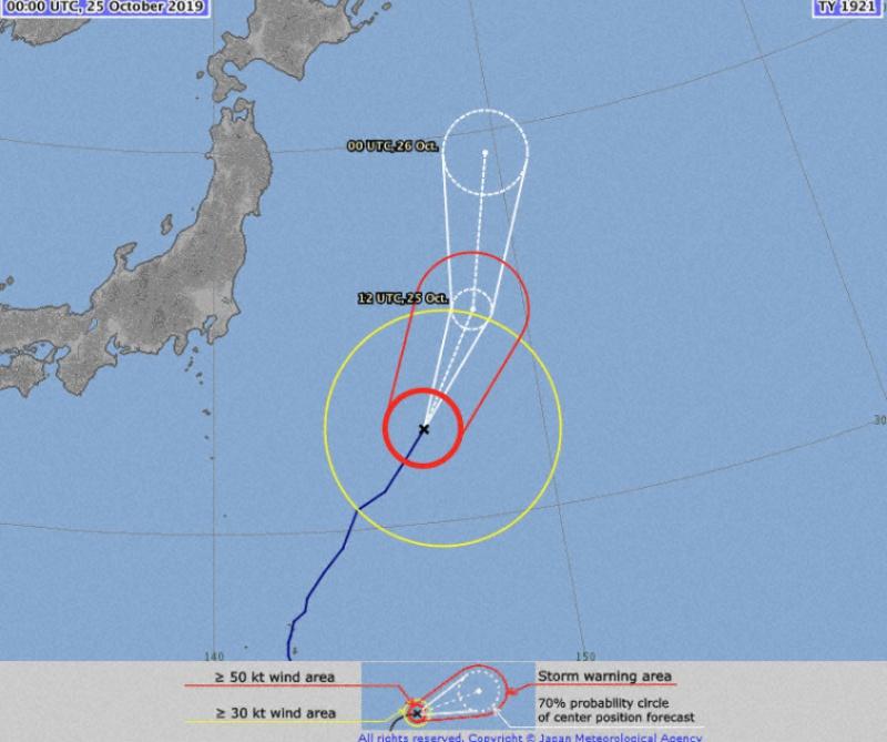 สำนักอุตุนิยมวิทยาญี่ปุ่น แจ้งเตือนด้วยว่า จะเกิดฝนตกหนักที่สุดในช่วง 24 ชั่วโมง จนถึงเวลา 06.00 น.ของวันที่ 26 ต.ค. บริเวณภูมิภาคคันโต ทางตะวันออกของญี่ปุ่น และภูมิภาคโตโฮกุ ทางภาคตะวันออกเฉียงเหนือ ส่วนภูมิภาคโตไก และโกชิน รวมทั้งเกาะอิซึ ทางใต้กรุงโตเกียว จะเกิดฝนตกหนัก วัดปริมาณน้ำฝนได้ราว 150 มิลลิเมตร