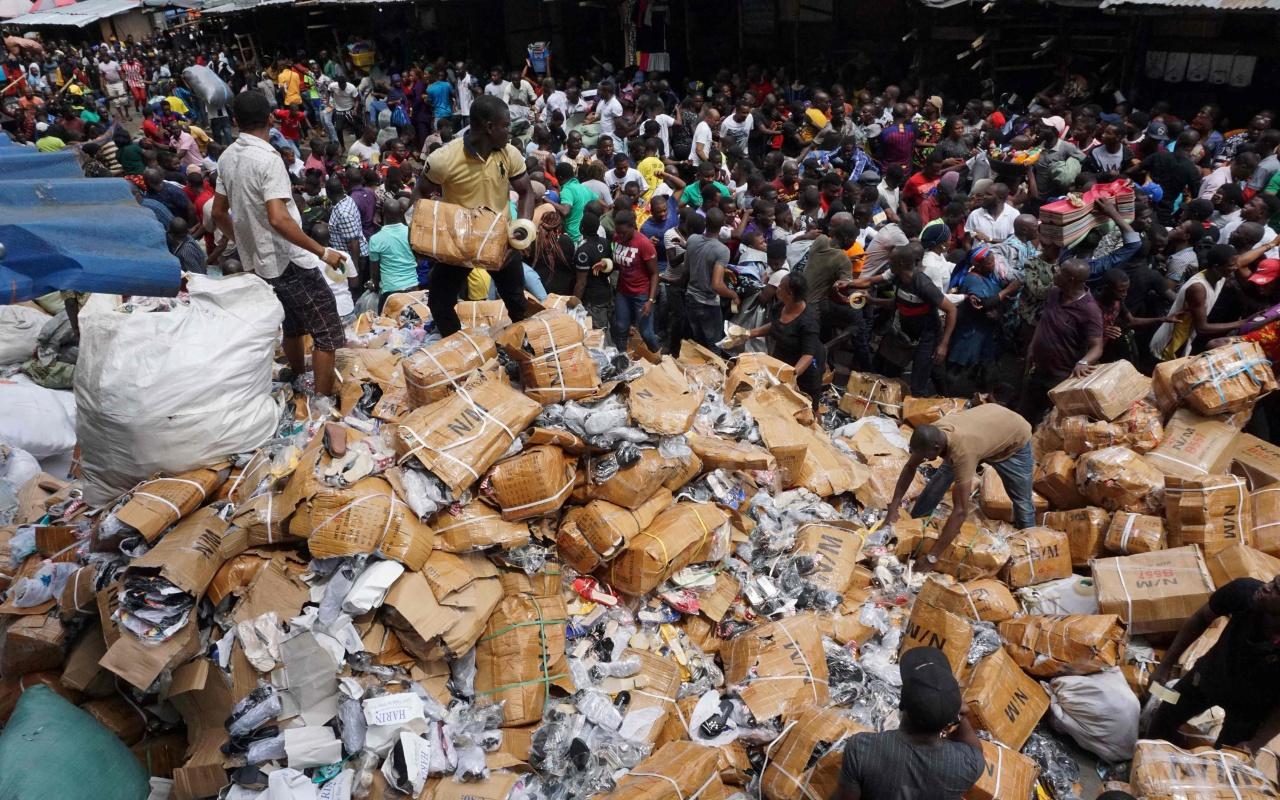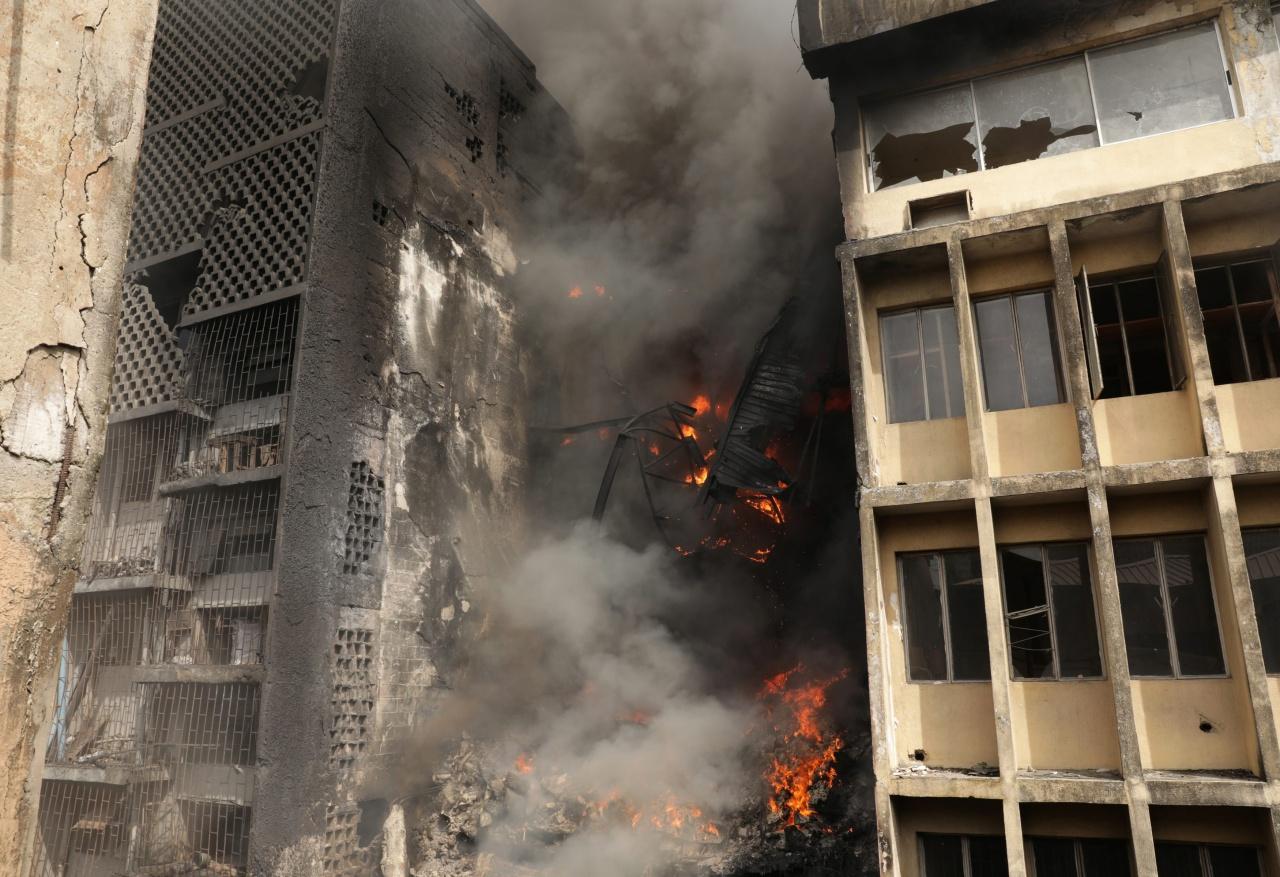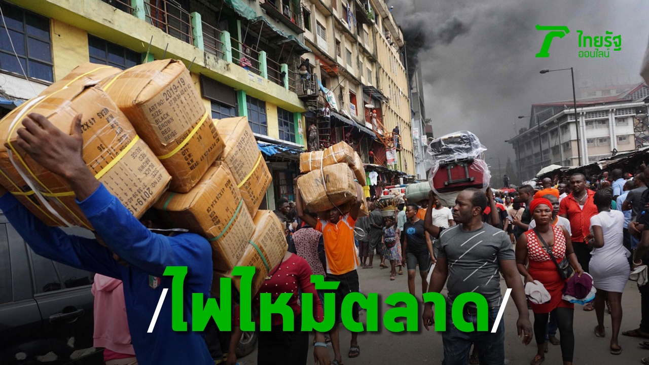 ชาวไนจีเรียระทึก ไฟไหม้ตลาดดังในกรุงลากอส เมืองหลวง พระเพลิงโหมไหม้รุนแรง ควันดำทะมึนพวยพุ่งสู่ท้องฟ้า เร่งขนของหนีพระเพลิง เสียหายหนัก