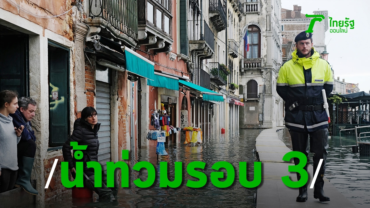 เมืองเวนิส ของอิตาลี ถูกนำ้ท่วมหนักเป็นครั้งที่ 3 ในรอบสัปดาห์เดียว หลังจากระดับน้ำทะเลเพิ่มสูงขึ้นอีกครั้งในวันอาทิตย์ ขณะที่พื้นที่อื่นๆ ของอิตาลีก็กำลังเผชิญกับฝนตกหนัก