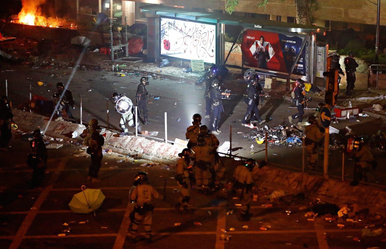 สำนักข่าวต่างประเทศรายงานว่า ตำรวจฮ่องกงตัดสินใจบุกมหาวิทยาลัย โพลีเทคนิค หรือ โพลียู แล้วเมื่อช่วงเช้ามืดที่ผ่านมา เพื่อเคลียร์กลุ่มผู้ประท้วงจำนวนหลายร้อยคนที่ปักหลักอยู่ในสถานศึกษาแห่งนี้มานานหลายวัน ออกไป ขณะที่ผู้ชุมนุมจุดไฟเผาบริเวณทางเข้ามหาวิทยาลัย และขว้างปาระเบิดขวด รวมทั้งยิงธนูใส่เจ้าหน้าที่จากด้านหลังเครื่องกีดขวางด้วย