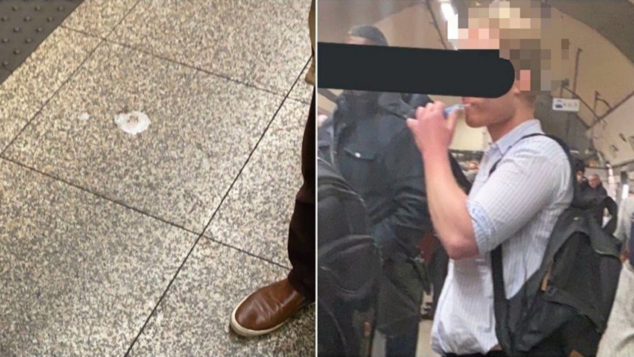 เท่านั้นไม่พอ หลังจากเขาถูไถขัดแปรงสีฟันได้สักพัก ไอ้หนุ่มก็บ้วนถ่มทุกอย่างในปากลงบนพื้นชานชาลาสถานีรถไฟอย่างไม่สนใจใคร ทั้งๆที่ช่วงเวลานั้นผู้คนต่างยืนรอรถไฟบริเวณชานชาลากันหนาแน่น