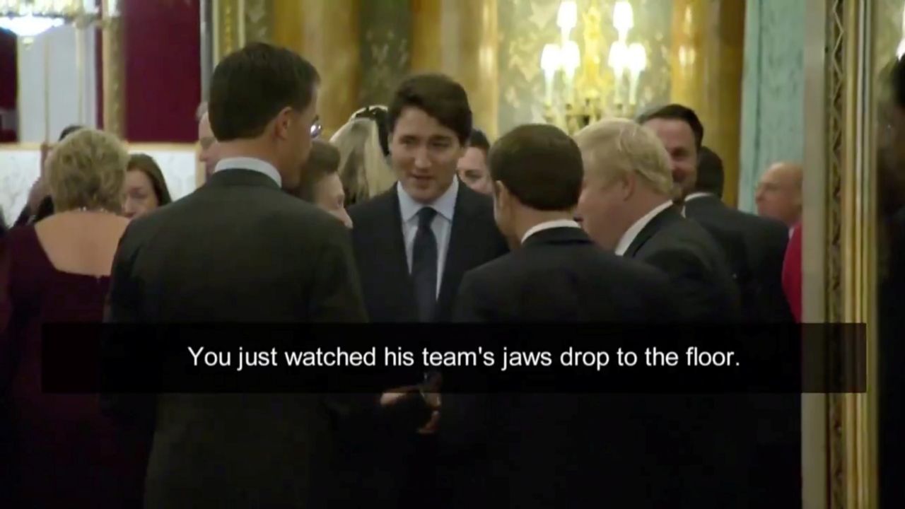 จากนั้น นายมาครงได้ดูเหมือนบอกบางอย่างเล็กๆ น้อยๆ แต่คำพูดของเขาถูกกลบด้วยเสียงคนคุยด้านหลัง ต่อมา นายทรูโดซึ่งดูขบขัน ได้พูดตอบว่า ‘โอ ใช่ ใช่ คุณเพิ่งเห็นทีมของเขาตะลึงจนอ้าปากค้างถึงพื้น’