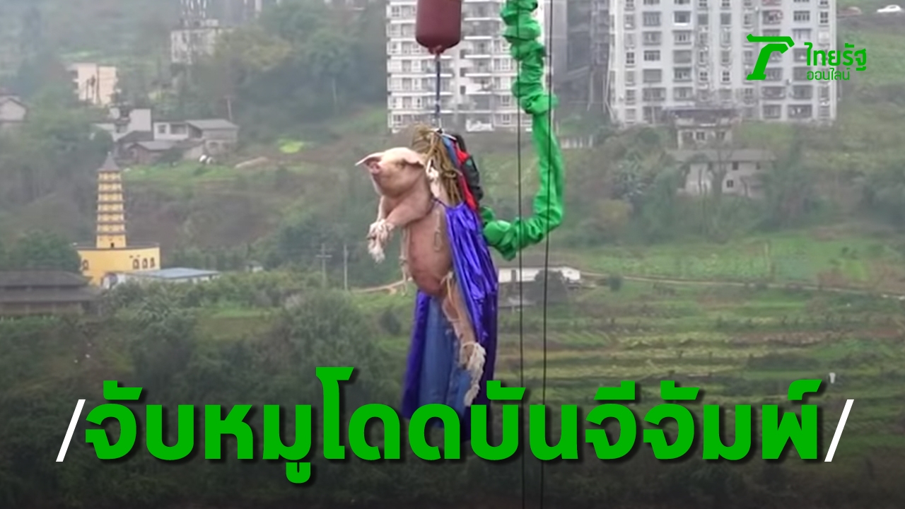 ชาวเน็ตจีนวิพากษ์วิจารณ์สวนสนุกในนครฉงชิ่งอย่างหนัก หลังจากพวกเขาจับหมูตัวหนึ่งมากระโดดบันจี้จัมพ์ เพื่อเปิดตัวเครื่องเล่นใหม่