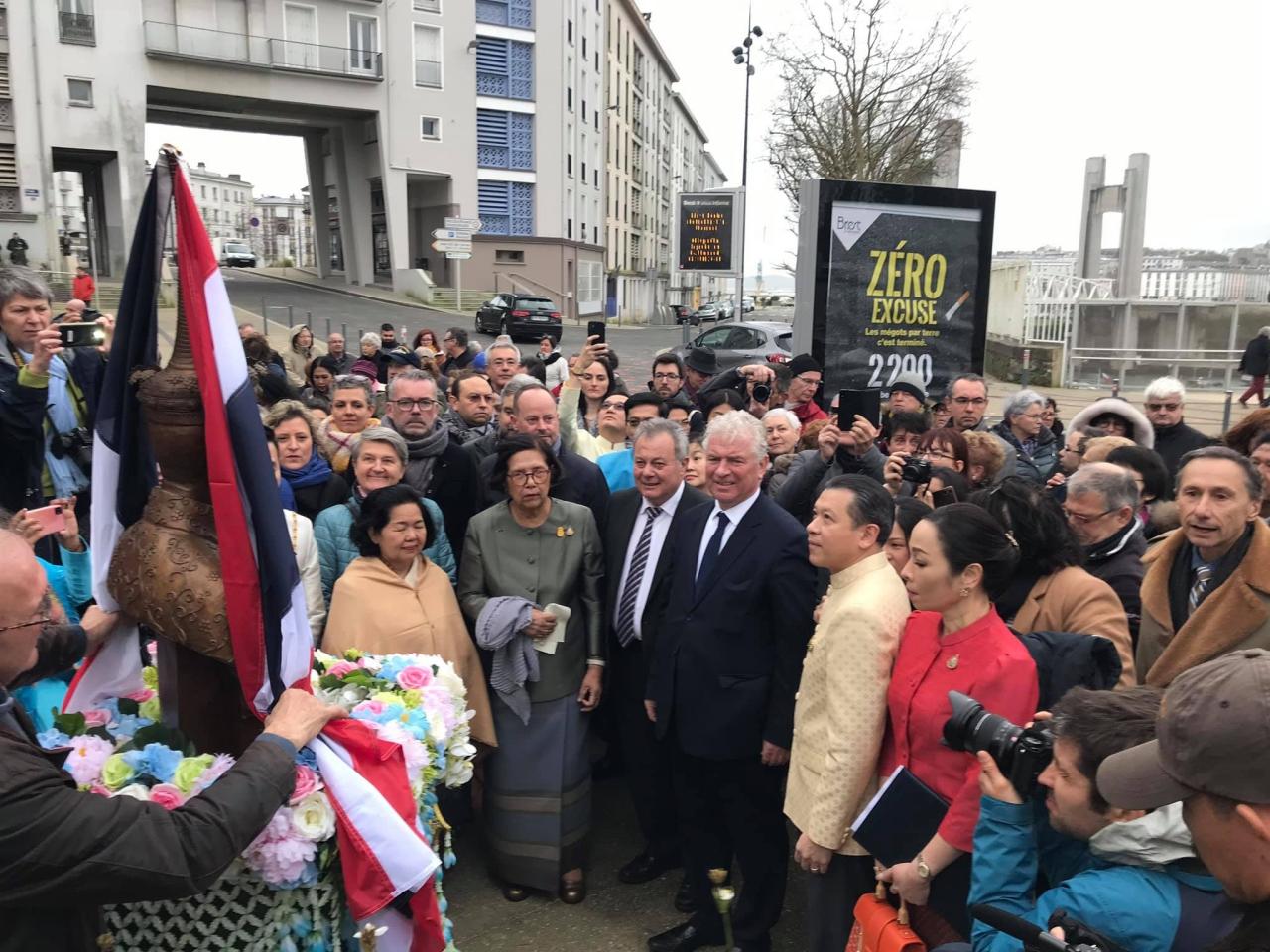 อาจารย์วัชระ ประยูรคำ ประติมากรชื่อดัง โพสต์ผ่านกลุ่มแฟนเพจเฟซบุ๊ก เมื่อวันที่ 15 ก.พ. 2563 ที่ผ่านมา ซึ่งเป็นพิธีเปิดอนุสาวรีย์ "พระยาโกษาปาน" ณ บริเวณหัวมุม (3 แยก) ถนนดูกุยดิก ถ.ปาสเตอร์ และถนนชอง มูแล็ง เมืองแบรสต์ ใกล้ถนนชื่อสยาม โดยมีทั้งชาวไทยและชาวฝรั่งเศสร่วมในพิธีดังกล่าว