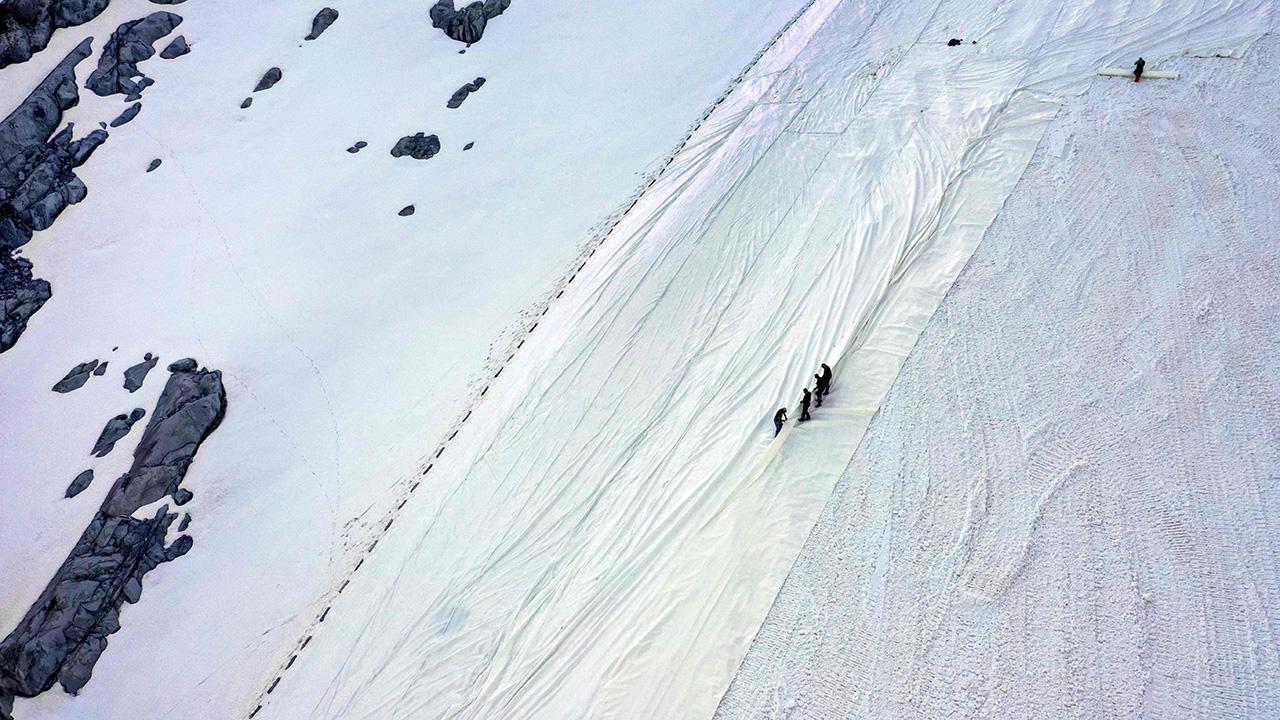 น้ำแข็งในแถบอัลไพน์กำลังได้รับการปกป้องจากภาวะโลกร้อน ซึ่งบริเวณชายแดนระหว่างแคว้นลอมบาร์เดียและภูมิภาคเทรนติโน อัลโต อาดิจ ได้มีการคลี่แผ่นผ้าใบคลุมหิมะเป็นแถบยาวครอบคลุมพื้นที่ที่ระดับความสูง 2,700-3,000 เมตร.