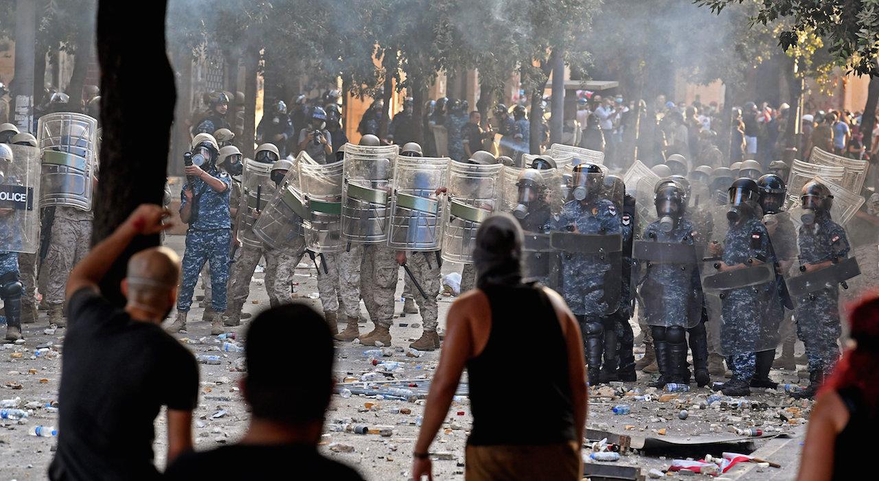 กลุ่มผู้ชุมนุมเริ่มเดินทางจากพื้นที่ใกล้จุดระเบิดที่ท่าเรือกรุงเบรุต ไปยังจัตุรัส ‘มาร์เทอร์’ (Martyr) ใจกลางเมือง ระหว่างทางเกิดการปะทะกับตำรวจที่ถูกส่งมาควบคุมสถานการณ์หลายครั้ง โดยผู้ประท้วงขว้างปาก้อนหินกับดอกไม้ไฟใส่เจ้าหน้าที่ ขณะที่ตำรวจตอบโต้ด้วยแก๊สน้ำตาและกระสุนยาง ผู้ชุมนุมที่โกรธแค้นยังจุดไฟเผาหลายพื้นที่ในเขตกลางเมืองของกรุงเบรุตด้วย