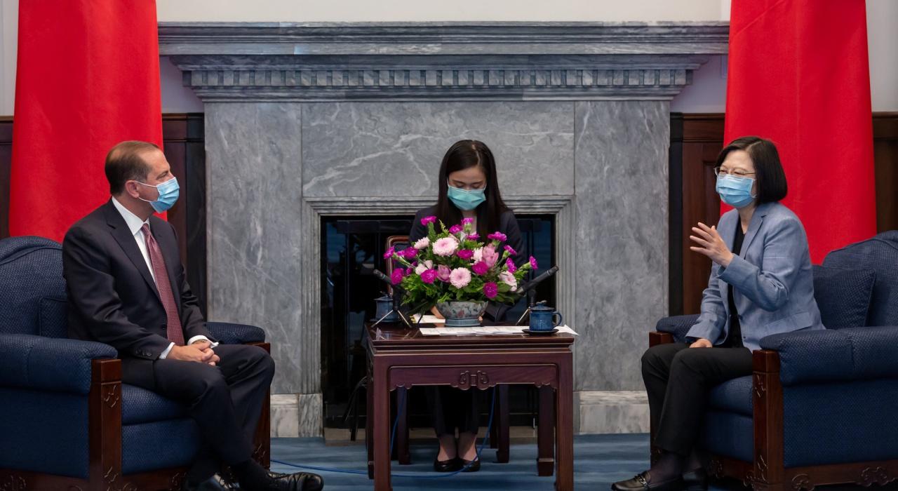 นายอาซาร์ ระบุว่า เขารู้สึกเป็นเกียรติอย่างยิ่งที่ได้เดินทางมาที่นี่ เพื่อนำมิตรภาพและการสนับสนุนอย่างเข้มแข็งจากประธานาธิบดี โดนัลด์ ทรัมป์ มายังไต้หวัน พร้อมทั้งยังกล่าวชื่นชมมาตรการรับมือโควิด-19 ของไต้หวัน ที่ถือว่าประสบความสำเร็จเป็นอันดับต้นๆ ของโลก ขณะที่ ประธานาธิบดี ไช่ กล่าวกับรัฐมนตรีสาธารณสุขสหรัฐฯ ว่า การมาเยือนของเขา ถือเป็นย่างก้าวสำคัญในความร่วมมือต่อสู้โรคระบาดใหญ่ระหว่างสองประเทศ พร้อมทั้งกล่าวขอบคุณสหรัฐฯ ที่มีส่วนช่วยเรียกร้องให้ไต้หวันได้เข้าร่วมประชุมสมัชชาอนามัยโลก และสามารถเข้าถึงองค์การอนามัยโลกได้มากยิ่งขึ้นในช่วงที่โควิด-19 ระบาด ทั้งๆ ที่ไต้หวันไม่ได้เป็นสมาชิกองค์กรอนามัยโลก