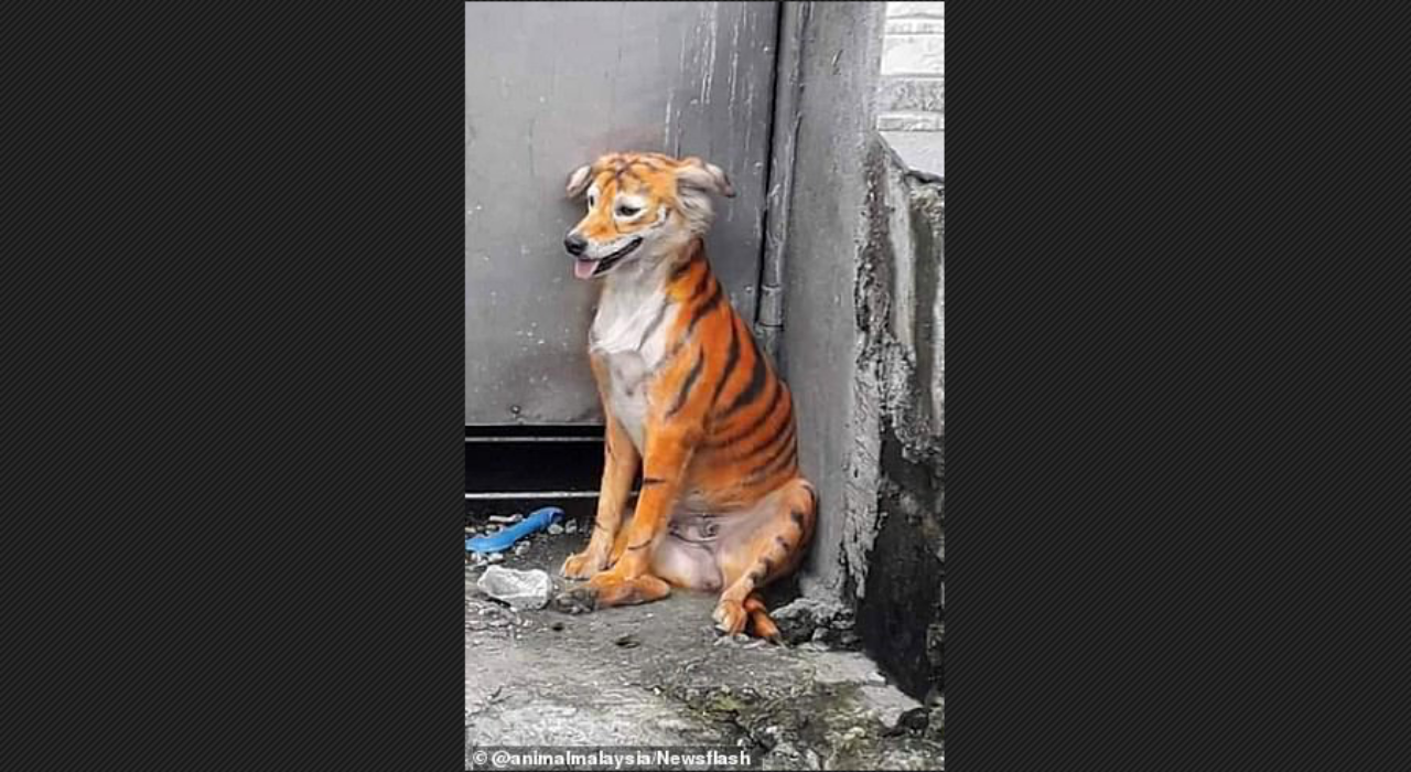 (4 ก.ย.63) หน่วยงานปกป้องสิทธิสัตว์ Malaysia Animal Association ในมาเลเซีย พบสุนัขจรจัดตัวหนึ่งเดินไปเดินมาตามท้องถนนในสภาพโดนคนถูกคนแกล้งทาสีตามตัวเป็นสีส้ม แล้วเขียนสีดำเป็นลายพาดกลอนให้ จนมันดูคล้ายเสือ โดยประกาศให้ทุกคนช่วยกันแจ้งเบาะแสเข้าไปว่าใครเป็นคนก่อเหตุ เพราะว่าสีที่ใช้น่าจะเป็นอันตรายต่อสุนัข