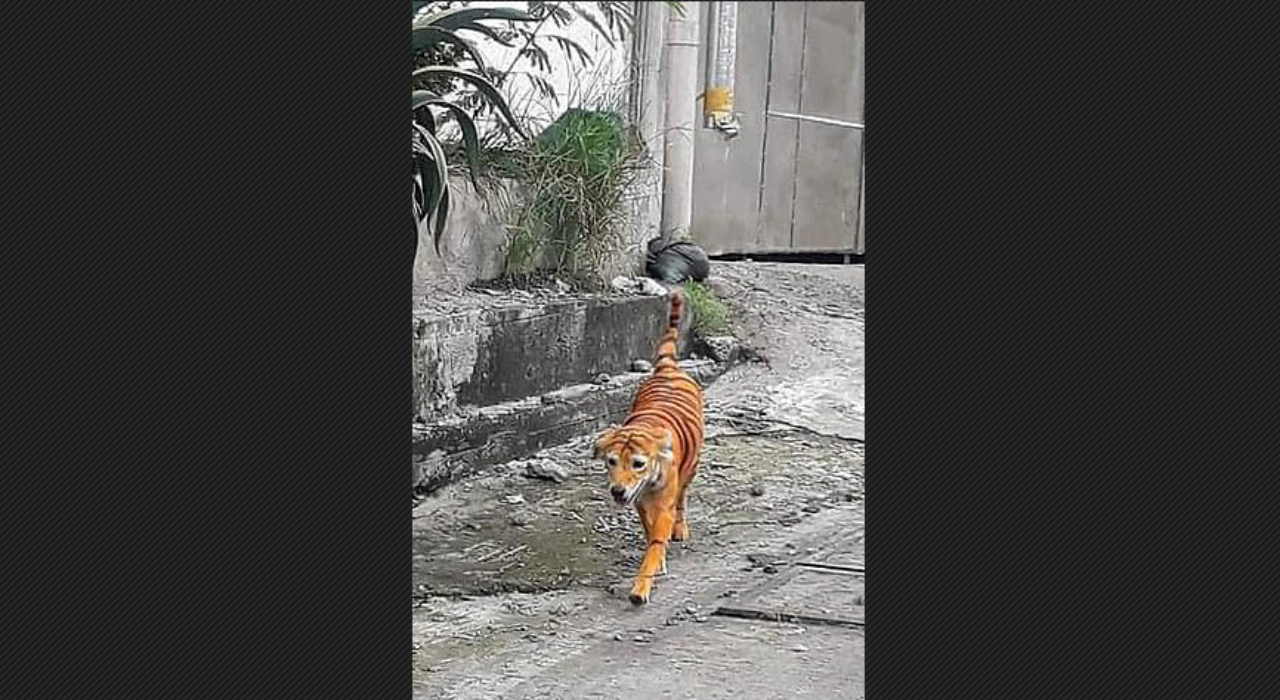 เจ้าสุนัขจรจัดตัวนี้เดินเตร็ดเตร่ไปตามท้องถนน สร้างความตกใจให้กับผู้คนที่พบเห็น เพราะดูเผินๆ แล้วมันก็คล้ายกับเสืออยู่เหมือนกัน