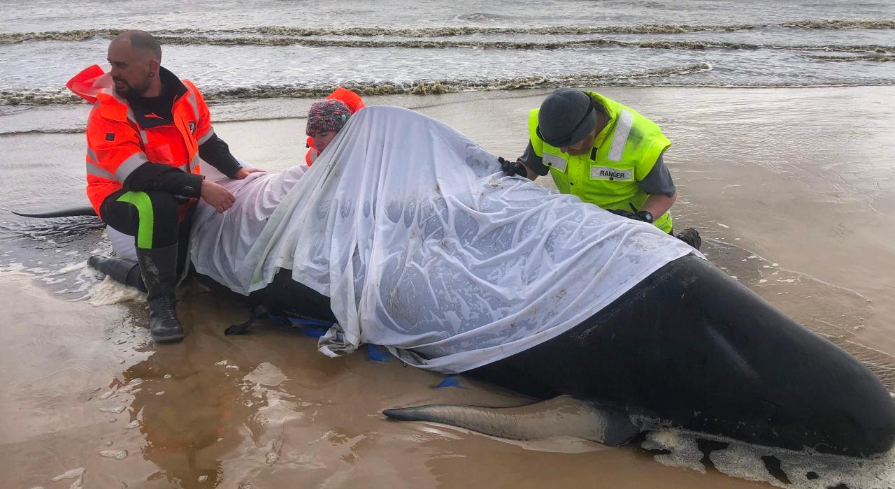 สำหรับปฏิบัติการช่วยเหลือวาฬเกยตื้นในวันจันทร์ที่ผ่านมา เจ้าหน้าที่กู้ภัยสามารถนับวาฬได้ราว 270 ตัว แต่จากการขึ้นบินสำรวจด้วยเฮลิคอปเตอร์ในวันอังคาร กลับพบวาฬเพิ่มอีกราว 200 ตัว ในพื้นที่ใกล้เคียงกัน ซึ่งคาดว่าน่าจะถูกกระแสน้ำพัดเข้ามาโดยเชื่อว่าทั้งสองกลุ่มน่าจะเป็นวาฬที่อยู่ในฝูงเดียวกัน