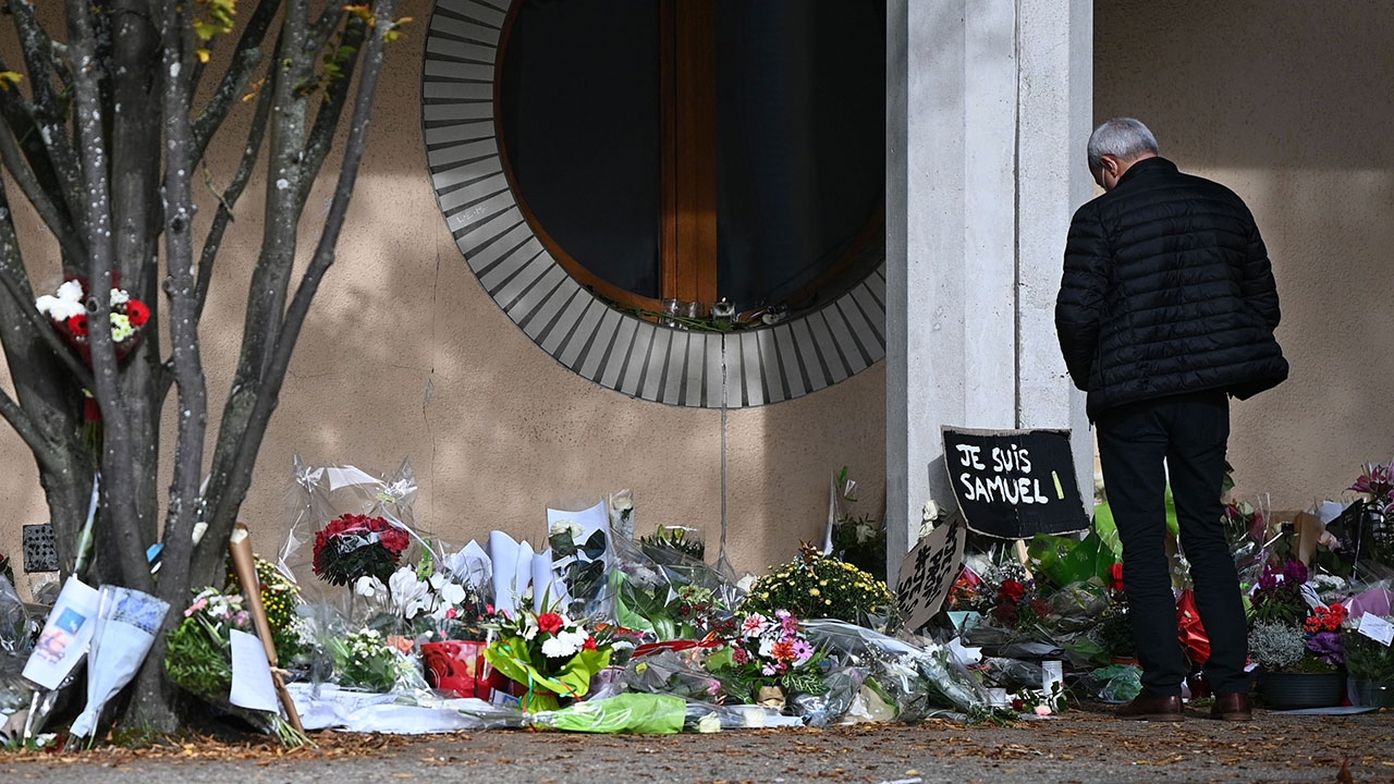 ที่กำลังเผชิญและรุนแรงอย่างมากในช่วงเดือนตุลาคมนี้ ก็คือการฆ่าตัดคอนายซามูเอล ปาตี ครูสอนภูมิศาสตร์และประวัติศาสตร์ในโรงเรียนมัธยมเขตชานเมืองกงฟล็องส์แซงโตโนรีน เหตุเพราะนำการ์ตูนที่เกี่ยวกับศาสดาของศาสนาอิสลามไปสอนในชั้นเรียนเรื่องเสรีภาพในการแสดงออก โดยตะโกนว่า เราคือครู เราคือฝรั่งเศส ที่ครูปาตีตะโกนอย่างนี้เพราะต้องการสนับสนุนเสรีภาพในการแสดงออกและเสรีภาพในการสอนหนังสือ