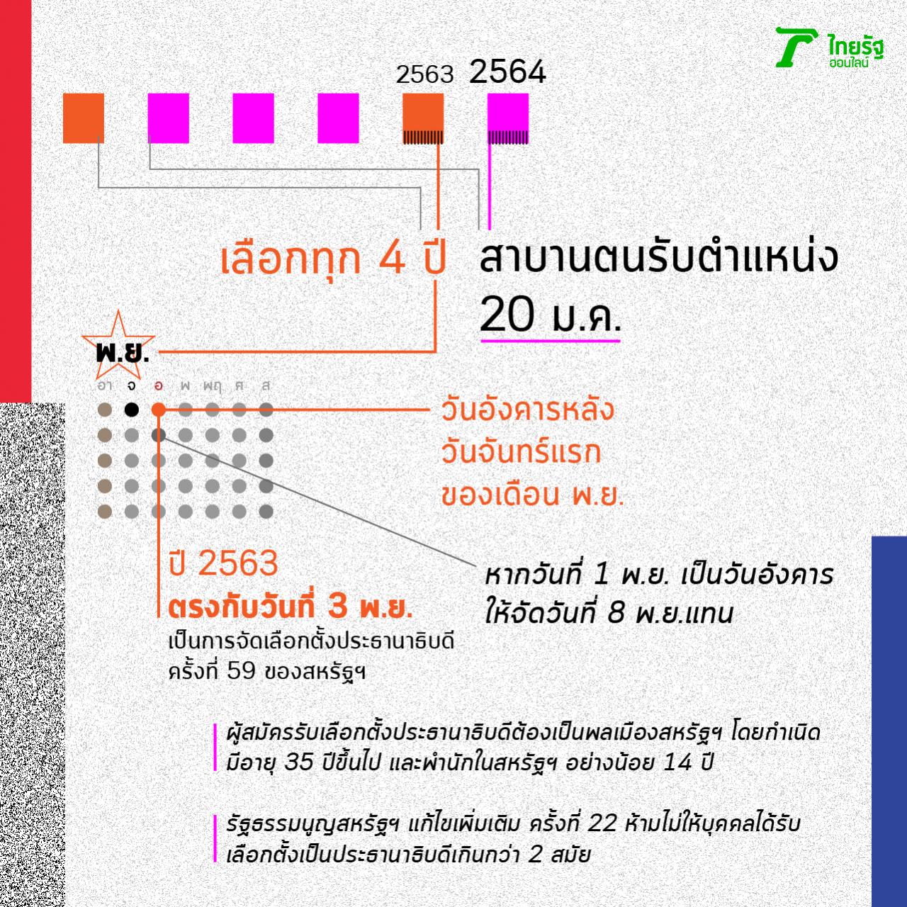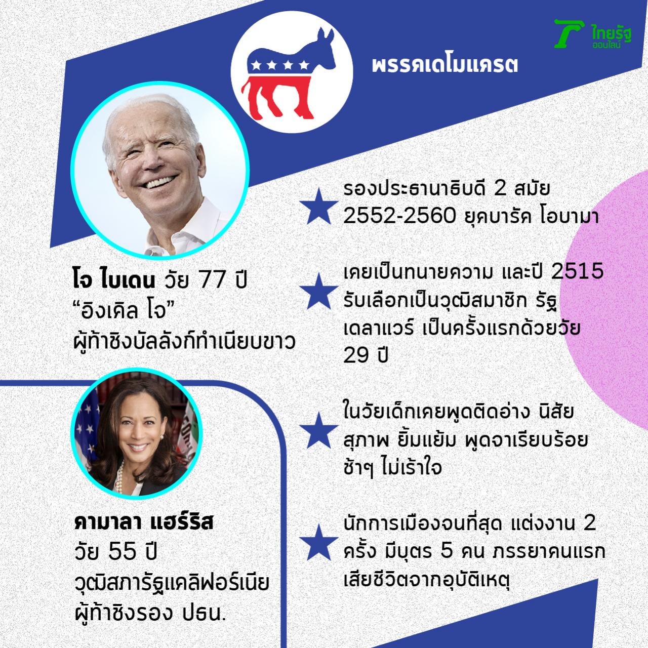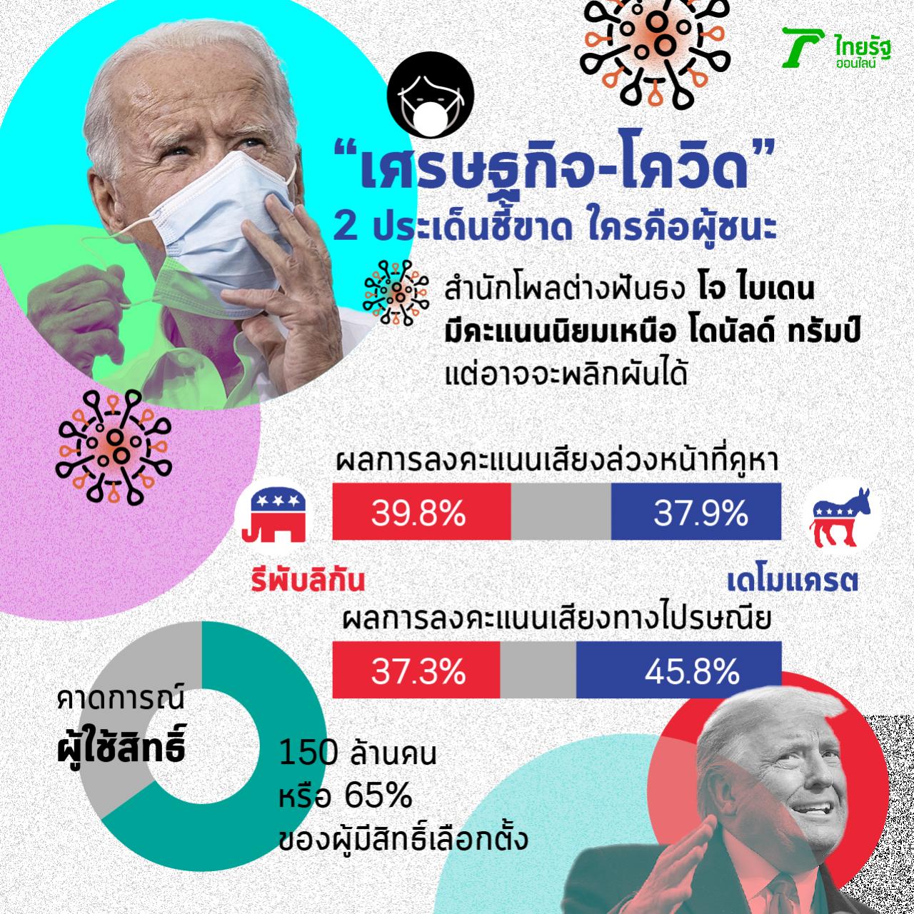 ศึกเลือกตั้งสหรัฐฯ ในวันที่ 3 พ.ย.2563 นี้ ใครจะได้เป็นประธานาธิบดีสหรัฐฯ คนที่ 46 ระหว่าง “โจ ไบเดน” ผู้ท้าชิงจากพรรคเดโมแครต และโดนัลด์ ทรัมป์ จากพรรครีพับลิกัน จะสามารถไปต่อได้หรือไม่ ในการทำหน้าที่ประธานาธิบดีสหรัฐฯ สมัยที่ 2