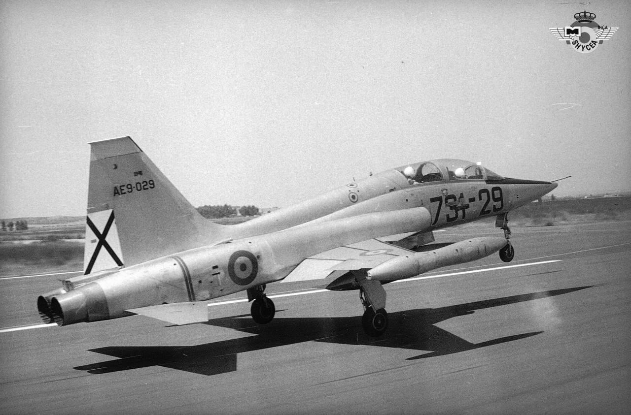 เครื่องบิน 14 ลำถูกบรรจุลงฝูง 731 สำหรับโรงเรียนการบิน เป็นฝูงบินฝึก และอีก 13 ลำ ถูกบรรจุลงฝูงบิน 732 เพื่อรักษาความพร้อมรบ โดยทั้งหมดนี้ใช้เวลาเปลี่ยนผ่านไม่นานก็มีความพร้อมสูงสุด และนักบินทุกคนก็เห็นคุณค่าต่อเนื่องนี้ เข้าสู่ช่วงปี 1980 เครื่องบินได้เดินทางไปยังเมืองซาราโกซ่า เพื่อฝึกการรบโดยใช้กระสุนจริง นักบินจะได้โอกาสฝึกการใช้อาวุธโจมตีภาคพื้นดิน โดยในปีนี้เครื่องบินเอฟ- 5 ปี เริ่มได้รับการปรับปรุงระบบนำทางเดินอากาศและระบบสื่อสาร รวมทั้งอุปกรณ์ช่วยในการลงจอด