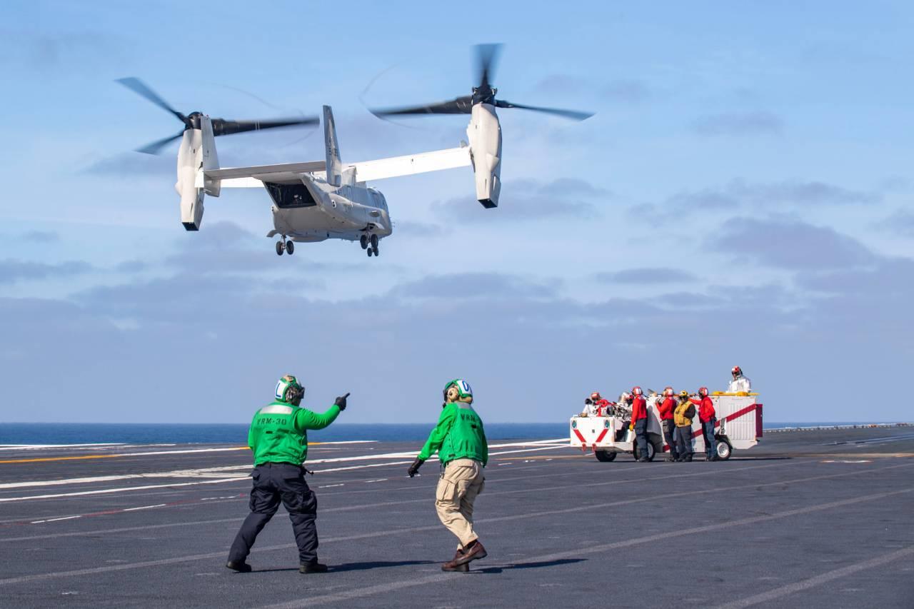 เมื่อ 20 พ.ย.2020 ที่ผ่านมา ซีเอ็มวี-22บี ได้ทดสอบการร่อนลง รวมททั้งการปฏิบัติงานบนเรือบรรทุกเครื่องบิน ยูเอสเอสคาร์ล วินสัน (CVN-70) เป็นครั้งแรกกลางมหาสมุทรแปซิฟิก โดยเครื่องจากฝูงบินขนส่งโลจิสติก VRM-30 นามเรียกขานว่า "ไททัน" โดยรูปแบบการลงจอด จะเป็นการลงทางดิ่งแบบเฮลิคอปเตอร์ ไม่เหมือนกับเครื่องบินซี-2 เอ ที่ต้องลงจอดบนดาดฟ้าลานบินแล้วใช้อุปกรณ์ช่วยหยุดเป็นตะขอเกี่ยว