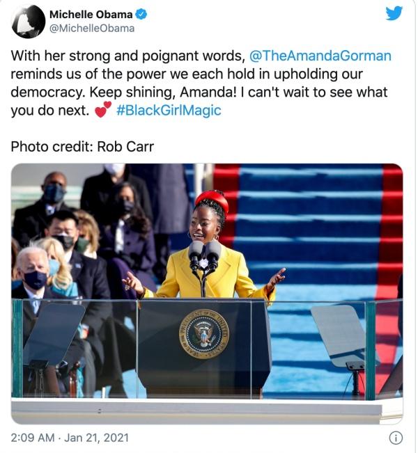 - อแมนดา กอร์แมน กวีสาวผิวสี สร้างประวัติศาสตร์เป็นนักกวีที่อายุน้อยที่สุดที่ได้รับเชิญให้มาอ่านบทกวีในพิธีสาบานตนรับตำแหน่งปธน.สหรัฐฯ