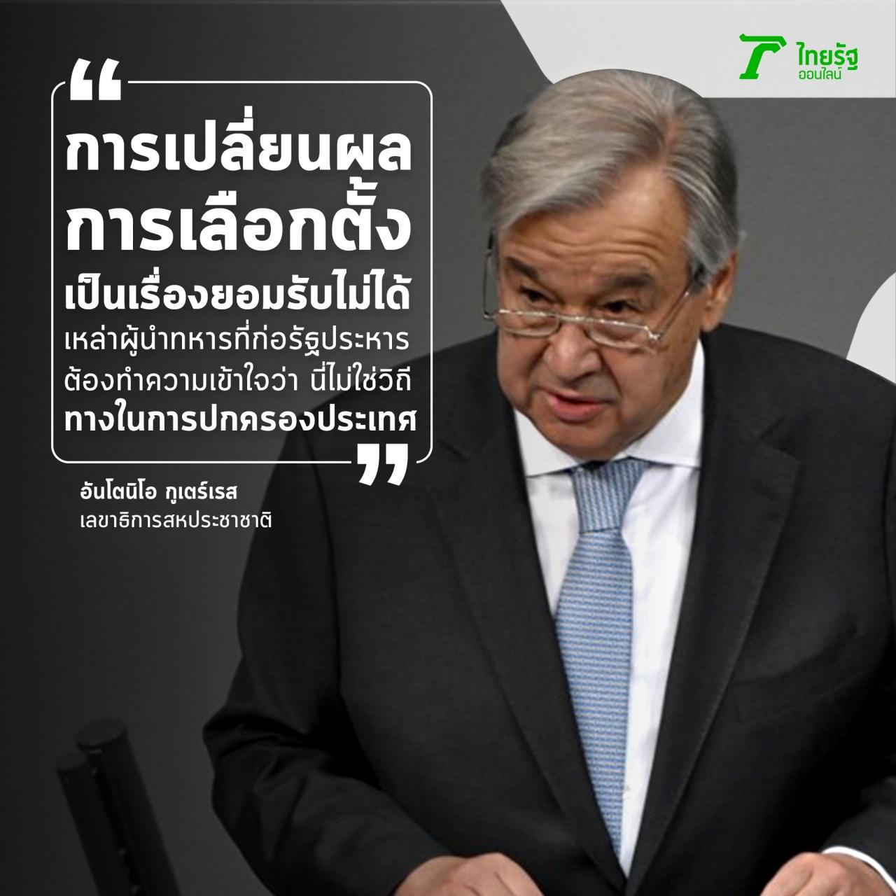 เลขาธิการสหประชาชาติ ออกมาเรียกร้องนานาชาติร่วมกดดันกองทัพพม่าก่อรัฐประหารให้ประสบความล้มเหลว ชี้การเปลี่ยนผลการเลือกตั้ง รับไม่ได้อย่างสิ้นเชิง