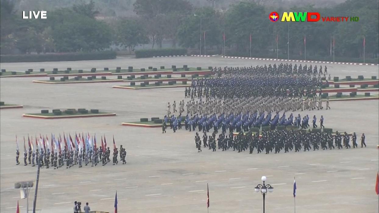 พล.อ.อาวุโส มิน อ่อง หล่าย ได้กล่าวในพิธีสวนสนามถึงสถานการณ์ตึงเครียดในประเทศ หลังกองทัพก่อรัฐประหารตั้งแต่ 1 ก.พ. ที่ผ่านมา โดยได้ให้คำมั่นว่ากองทัพจะปกป้องประชาชนและมุ่งมั่นเพื่อประชาธิปไตย และให้สัญญาว่ากองทัพจะจัดให้มีการเลือกตั้ง
