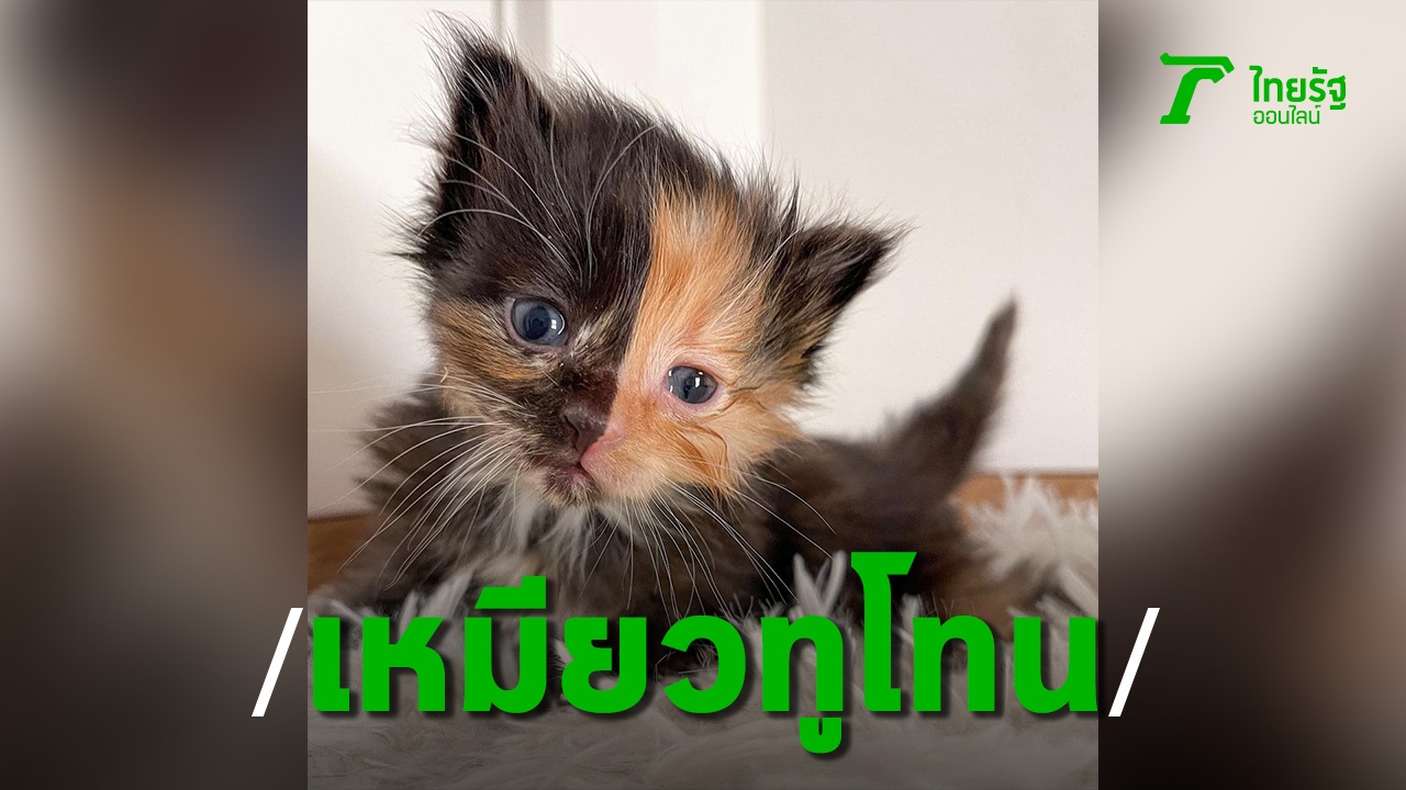 ลูกแมวกำพร้าในสหรัฐฯ เกิดมามีความพิเศษที่หน้าเป็นสีทูโทน โดยเป็นเส้นตรงแบ่งครึ่งกลางใบหน้า ครึ่งหนึ่งสีดำ อีกครึ่งหนึ่งเป็นสีส้ม