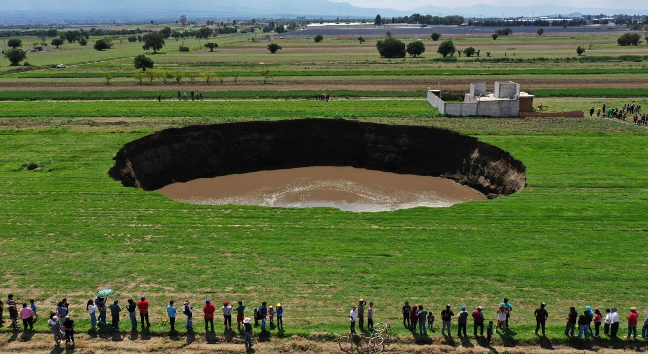 หลุมยุบขนาดยักษ์ที่เกิดขึ้นในภายในฟาร์มแห่งหนึ่งในรัฐปัวบลา ทางตะวันออกของเม็กซิโก ตั้งแต่ปลายเดือนพฤษภาคมที่ผ่านมา กำลังขยายวงกว้างเพิ่มมากขึ้น โดยล่าสุดมีขนาดเส้นผ่าศูนย์กลางกว่า 400 ฟุต หรือกว่า 125 เมตร ใหญ่กว่าสนามฟุตบอลแล้ว โดยมีความลึกอยู่ที่ 15 เมตร และยังมีทีท่าว่าจะขยายเพิ่มขึ้นเรื่อยๆ โดยเริ่มเข้าใกล้บ้านเรือนประชาชน และมีบ้านเรือนบางหลังถูกหลุมยุบกลืนไปแล้ว