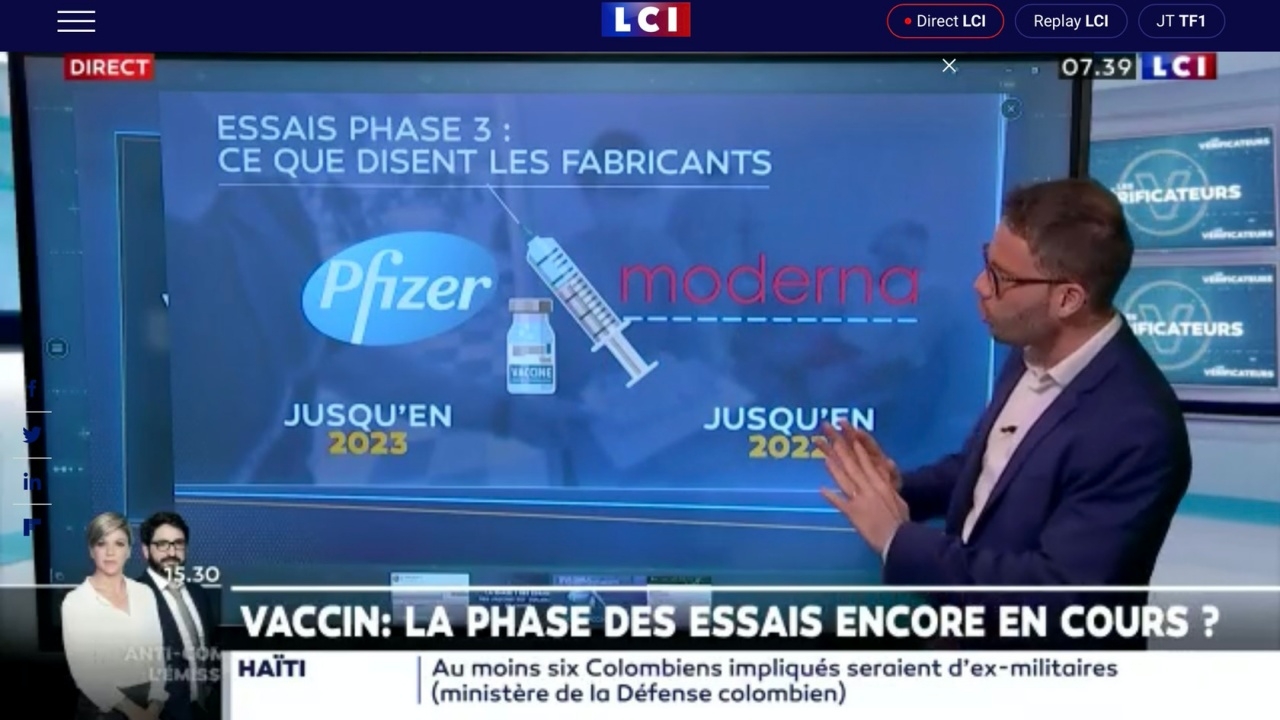 8 สิงหาคม 2564 บุญธง ก่อมงคลกูล ผู้สื่อข่าวไทยรัฐประจำประเทศเบลเยียม รายงาน สำนักข่าว LCI ของฝรั่งเศสรายงานว่า ตามที่มีบุคคลสาธารณะและผู้ใช้อินเทอร์เน็ตจำนวนมากแสดงความกังวลในการทดลองทางคลินิกระยะที่ 3 สำหรับวัคซีนป้องกันไวรัสโควิด-19 ข้อเท็จจริงคือ การทดลองทางคลินิกยังคงดำเนินการอยู่นั้นเป็นความจริง หากทว่าเป็นการติดตามผลมากกว่าการทดสอบเบื้องต้น ไม่ได้เหมือนที่หลายคนเข้าใจและกังวลเกี่ยวกับความปลอดภัย หรือผลกระทบต่อสุขภาพในระยะยาว