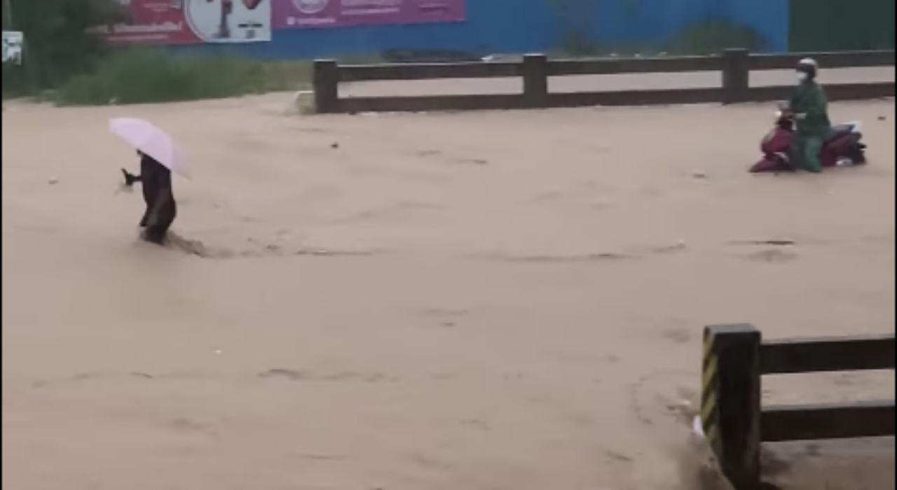กัมพูชาเพื่อนบ้านอาเซียนเผชิญกับพายุฝนถล่มชั่วข้ามคืน ส่งผลให้เกิดน้ำเชี่ยวกรากเอ่อล้นท่วมถนน และมีรายงานผู้สูญหายแล้ว 1 ราย