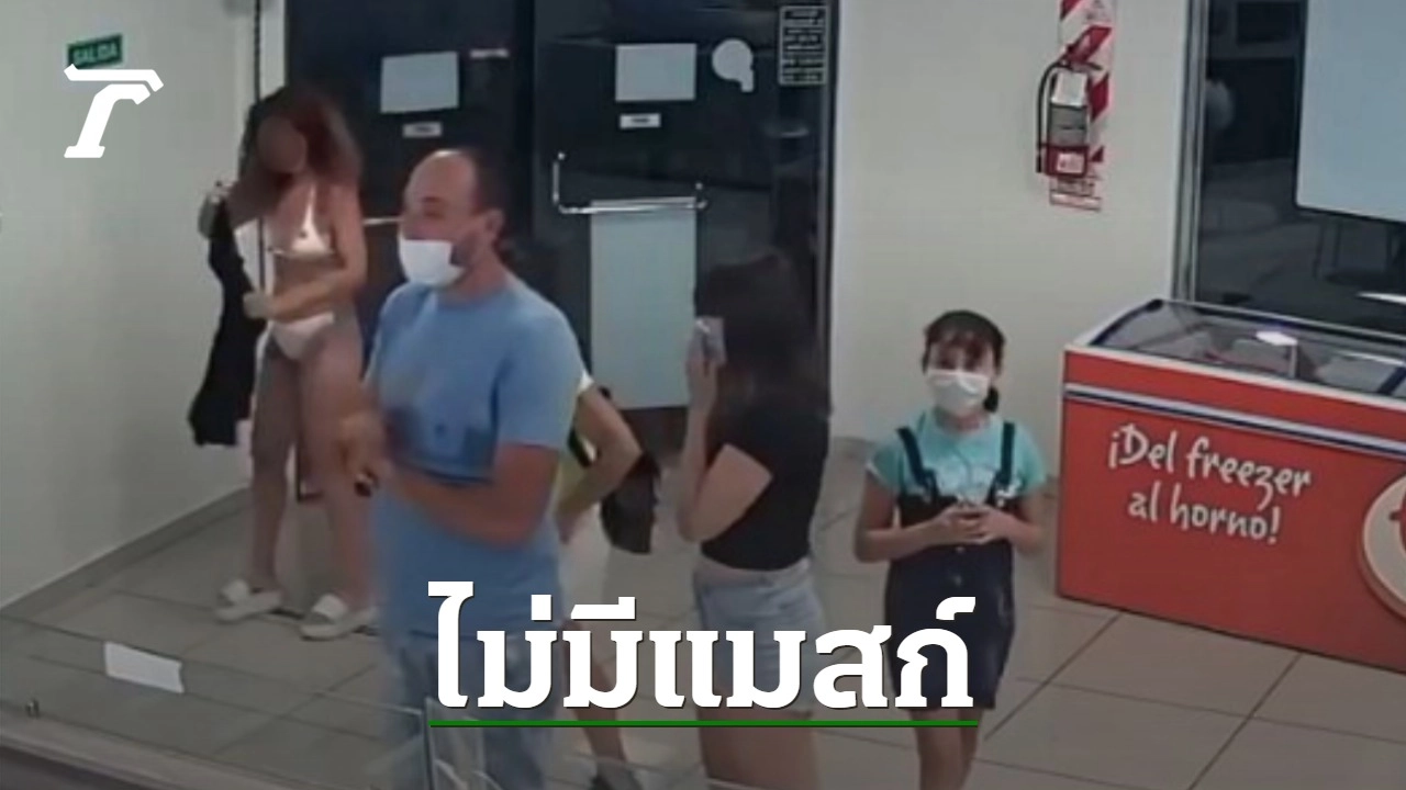สาวในอาร์เจนตินา โมโหพนักงานไม่ยอมขายไอศกรีมให้ เพราะไม่ได้สวมแมสก์ ถึงกับถอดชุดมาผูกปิดปากปิดจมูกแทนหน้ากากอนามัย ทำพ่อลูกในร้านตะลึง