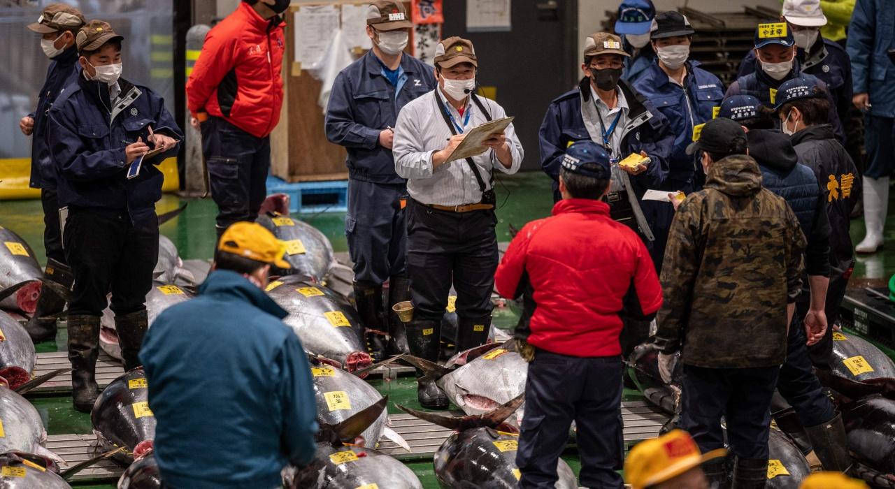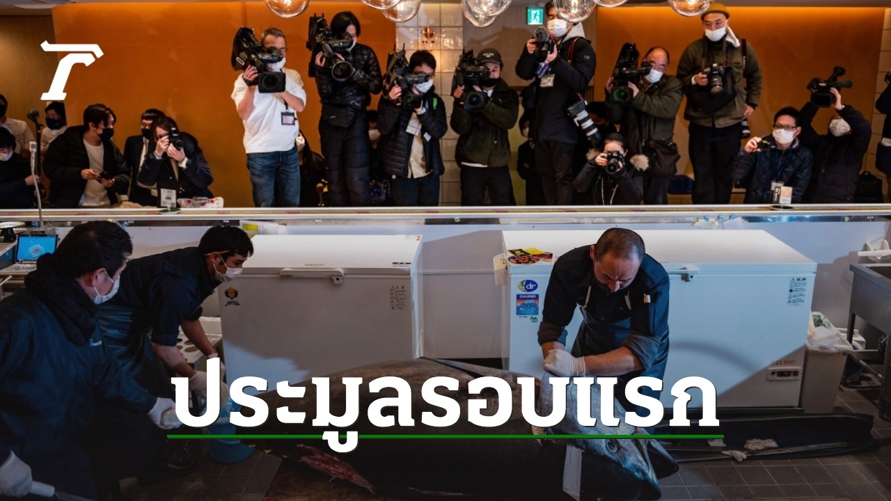 บรรยากาศการประมูลทูน่ายักษ์ครั้งแรกของปี ภายในตลาดปลาโทโยสุ ในกรุงโตเกียว เมื่อช่วงเช้าที่ผ่านมาตามเวลาในท้องถิ่น นับว่าบรรยากาศคึกคักมากกว่าช่วงปีที่ผ่านมา หลังจากซบเซาด้วยสถานการณ์การระบาดของโควิด-19 จนมูลค่าในการประมูลปลาในรอบปี 2564 อยู่ในระดับต่ำที่สุดเท่าที่เคยมีมา