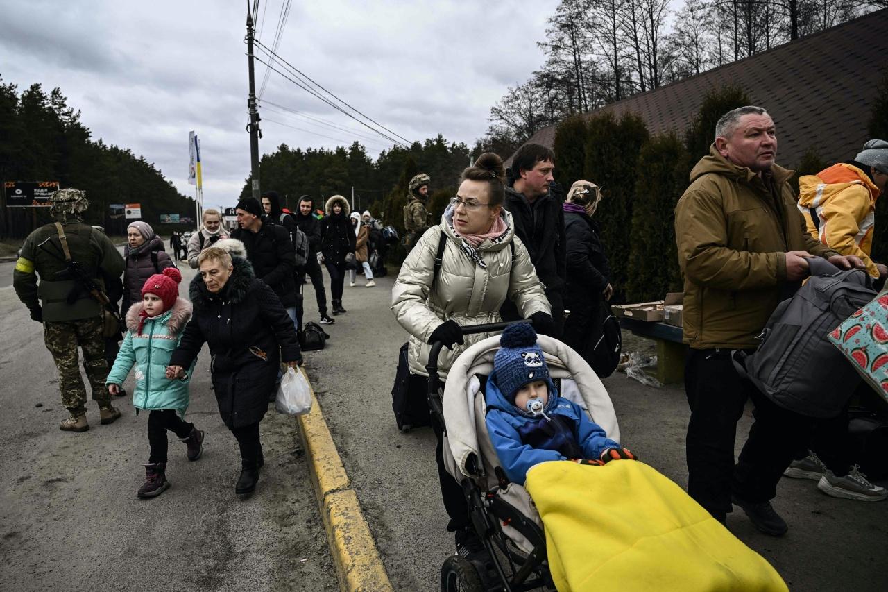 รัสเซียยิงปืนใหญ่โจมตีเมืองเอียร์ปิน ใกล้กรุงเคียฟ อย่างหนัก ทหารยูเครนพาประชาชนอพยพหนีตายออกจากเมือง