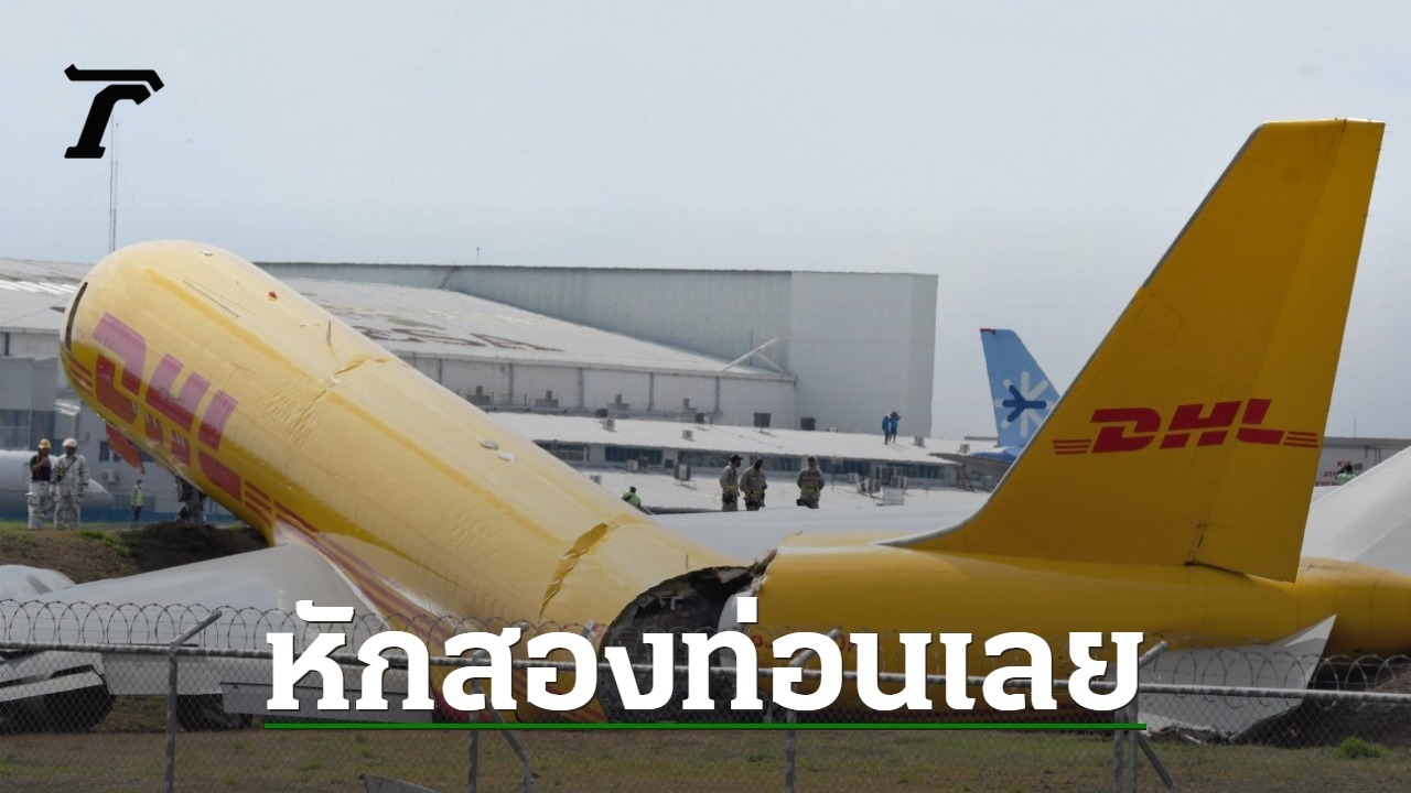เปิดนาทีสุดระทึก เครื่องบินขนส่งสินค้า โบอิ้ง 757 ของ DHL ไถลออกนอกรันเวย์ จนหักสองท่อนอย่างน่ากลัว หลังลงจอดฉุกเฉินที่คอสตาริกา