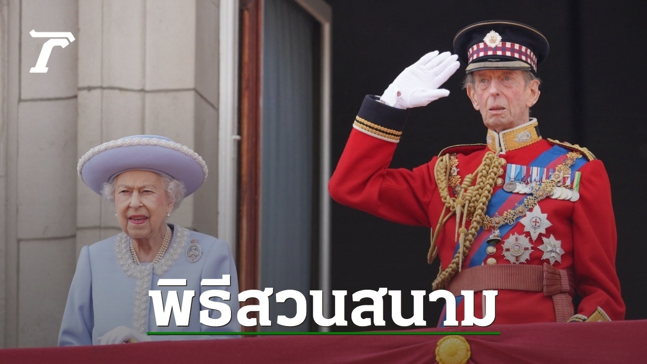 เมื่อ 2 มิ.ย.65 สมเด็จพระราชินีนาถเอลิซาเบธที่ 2 ซึ่งทรงมีพระพักตร์แจ่มใส แย้มพระสรวล ขณะเสด็จออกสีหบัญชร ณ พระราชวังบักกิงแฮม ในกรุงลอนดอน พร้อมกับเจ้าชายเอ็ดเวิร์ด ดยุกแห่งเคนต์ พระชันษา 86 ชันษา พระญาติใกล้ชิด ซึ่งเป็นพระราชนัดดาในสมเด็จพระเจ้าจอร์จที่ 5 เพื่อทอดพระเนตรพิธีสวนสนามและเชิญธงชัยเฉลิมพล ซึ่งจัดขึ้นอย่างเต็มรูปแบบครั้งแรก นับตั้งแต่โรคโควิด-19 ระบาดใหญ่ทั่วโลก