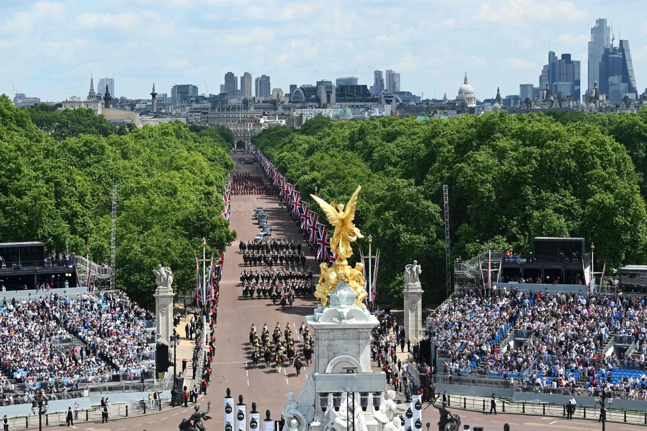 ทั้งนี้ สมเด็จพระราชินีนาถเอลิซาเบธที่ 2 ได้ทรงทอดพระเนตรพิธีสวนสนามและเชิญธงชัยเฉลิมพล โดยเจ้าชายแห่งเวลส์ มกุฎราชกุมารอังกฤษ ทรงปฏิบัติหน้าที่แทนพระองค์ โดยรับการถวายการเคารพจากเหล่าทหารแทนสมเด็จพระราชินีนาถฯ ซึ่งทรงมีพระพลานามัยไม่สู้ดีนักในปีนี้ ในขณะที่ สมเด็จพระราชินีนาถเอลิซาเบธที่2 จะเสด็จฯออกสีหบัญชรอีกครั้ง เพื่อทอดพระเนตรการแสดงการบินผาดแผลงของเครื่องบินกองทัพอากาศ เฉลิมฉลองในโอกาสพิเศษ ทรงครองสิริราชสมบัติครบ 70 ปี