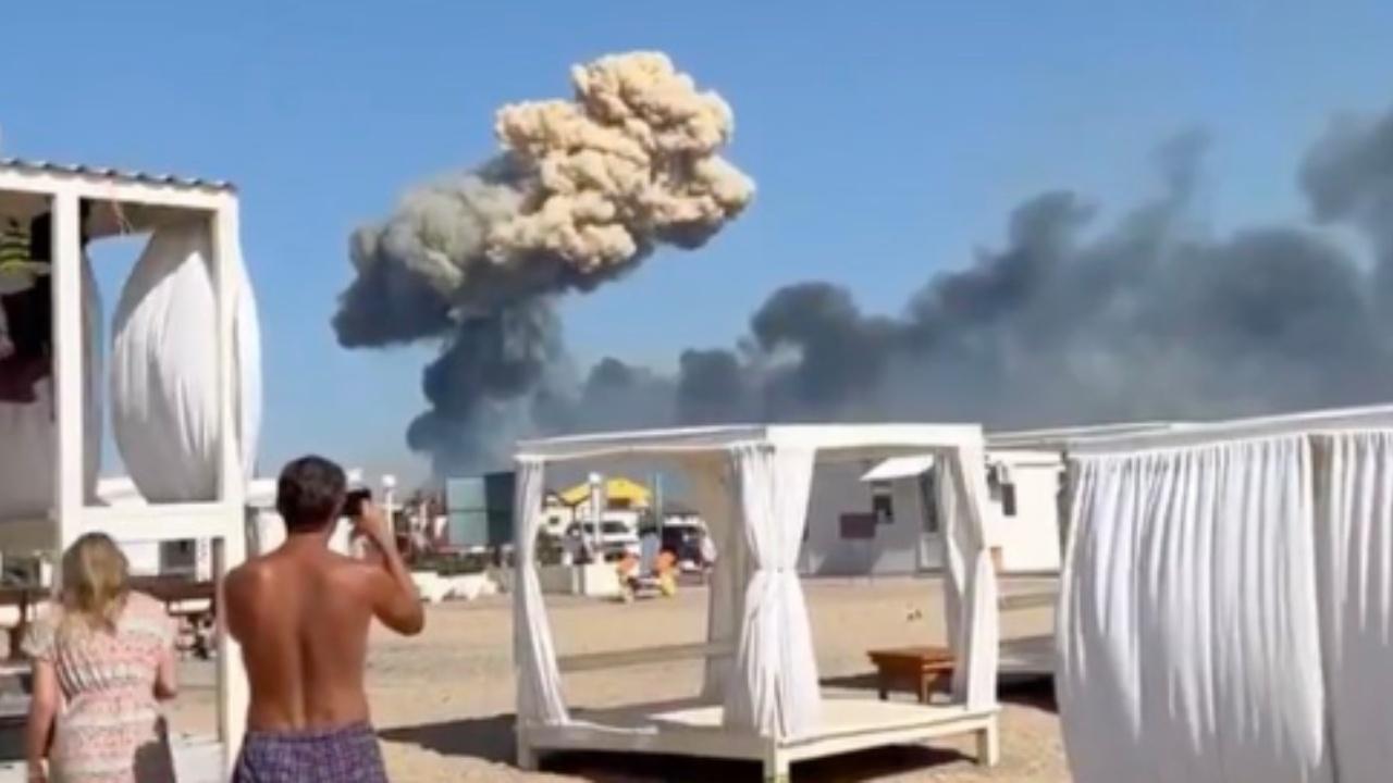 ใช่ฝีมือยูเครนหรือไม่ นาทีเกิดเหตุระเบิดรุนแรงปริศนาที่ฐานทัพรัสเซียบนคาบสมุทรไครเมีย ทำชาวรัสเซียที่มาพักผ่อนที่นี่แห่หนีกลับ ทำรถติดขัดยาวเหยียด