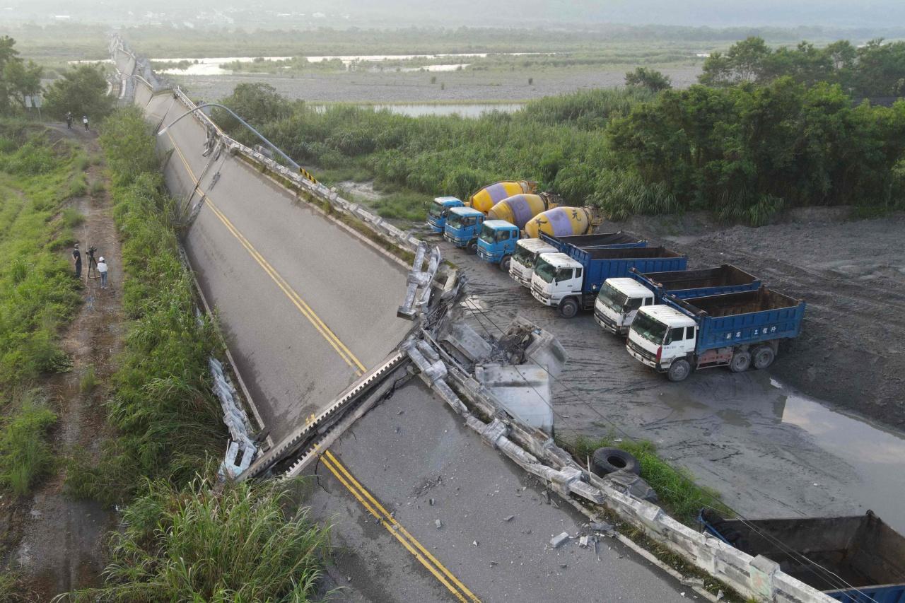 สำนักข่าวเอเอฟพี เผยภาพถ่ายทางอากาศจากโดรน แสดงให้เห็นสะพานขนาดใหญ่ ‘Gaoliao’ ในเขตฮวาเหลียน ทางภาคตะวันออกของเกาะไต้หวัน ได้รับความเสียหายอย่างหนักจากเหตุแผ่นดินไหวรุนแรงขนาด 6.9 เมื่อวันเสาร์ที่ 17 ก.ย.ที่ผ่านมา ซึ่งศูนย์กลางแผ่นดินไหวอยู่ที่เขตไถตง ทางภาคตะวันออกเฉียงใต้ของเกาะไต้หวัน ก่อให้เกิดแรงสั่นสะเทือนไปถึงกรุงไทเป