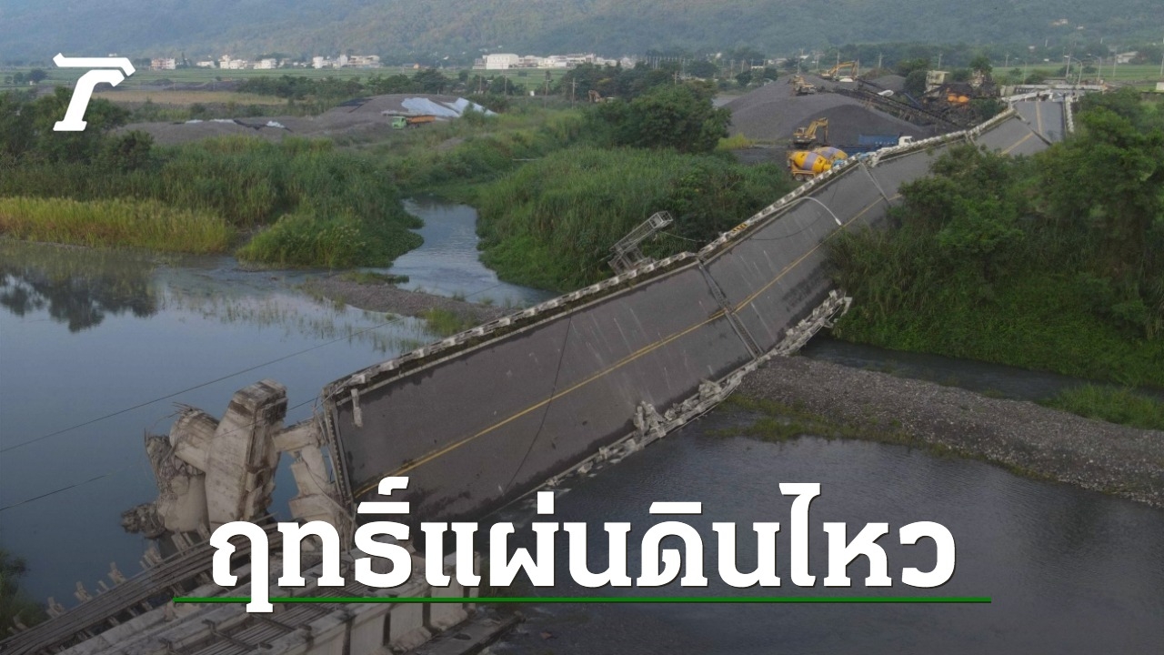ไต้หวันส่งโดรนบินสำรวจดูความเสียหาย พบสะพานใหญ่พังเสียหายหนักจากเหตุแผ่นดินไหวขนาด 6.9 ทำให้มีผู้เสียชีวิต 1 เจ็บอย่างน้อย 146 ราย