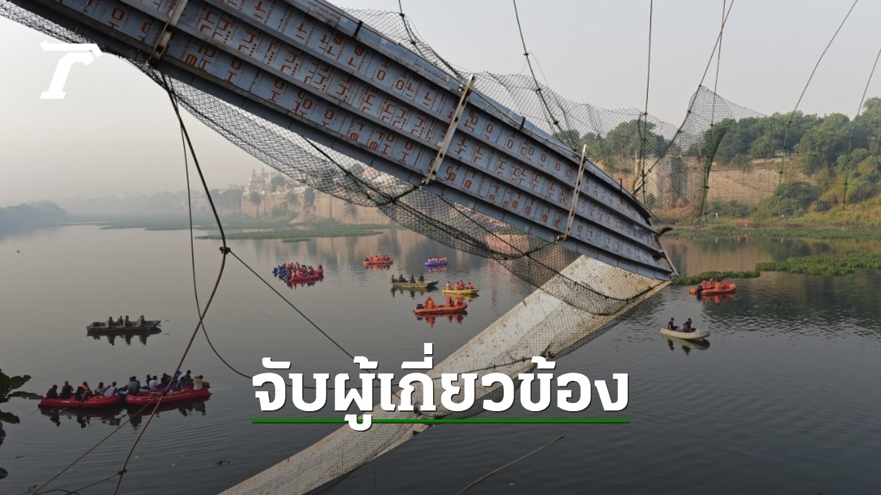 ตำรวจอินเดียจับกุมผู้ต้องสงสัย 9 คนเกี่ยวข้องเหตุโศกนาฏกรรมสะพานแขวนถล่มที่คร่าชีวิตประชาชน 141 ศพ หลายฝั่งตั้งข้อสงสัยเหตุใดจ้าง บ.ผลิตเครื่องใช้ไฟฟ้ามาดำเนินการรับเหมาซ่อมสะพาน