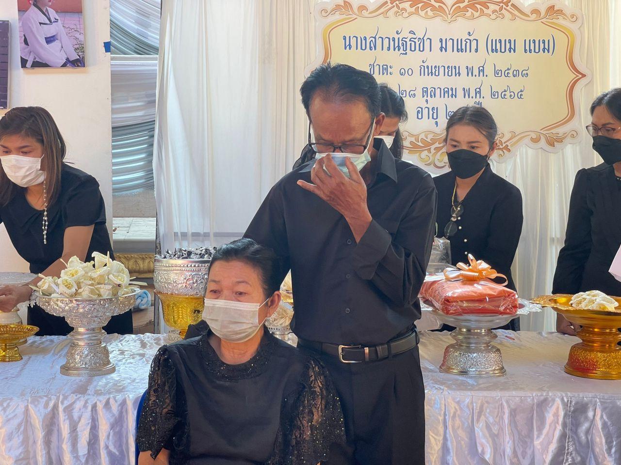 เมื่อเวลา 16.00 น. วันที่ 10 พฤศจิกายน 2565 ที่วัดปากห้วยขอนแก่น หมู่ 9 ต.หนองไขว่ อ.หล่มสัก จ.เพชรบูรณ์ นายสาคร มาแก้ว อายุ 67 ปี นางหนา มาแก้ว อายุ 64 ปี บิดาและมารดาพร้อมญาติ ได้นำร่างของ น.ส.นัฐธิชา มาแก้ว หรือ ครูแบมแบม อายุ 27 ปี ครูสาวสอนภาษาเกาหลีชาวหล่มสัก ที่ประสบเหตุเสียชีวิตในโศกนาฏกรรม “อิแทวอน” ประเทศเกาหลีใต้ ขึ้นสู่เมรุเพื่อฌาปนกิจท่ามกลางญาติพี่น้องเพื่อนฝูงและแขกที่มาร่วมงานกว่า 1,000 คน