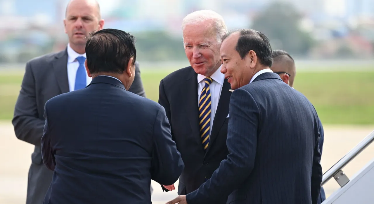 ประธานาธิบดีโจ ไบเดนของสหรัฐฯ เดินทางถึงกรุงพนมเปญ ประเทศกัมพูชาแล้ว เพื่อเข้าร่วมประชุมผู้นำอาเซียนที่กัมพูชาเป็นเจ้าภาพ โดยมีกำหนดหารือกับผู้นำกัมพูชา ญี่ปุ่น และเกาหลีใต้ แบบทวิภาคี