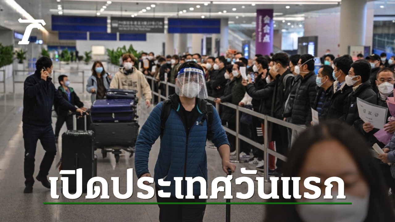 ผู้โดยสารกลุ่มแรกเกือบ 400 คนมาจากสิงคโปร์และแคนาดา เดินทางถึงจีน หลังเที่ยงคืนเข้าสู่วันที่ 8 มกราคม วันแรกที่จีนประกาศเปิดประเทศ ขณะที่ประชาชนในจีนและฮ่องกงหลั่งไหลเดินทางกันคึกคัก