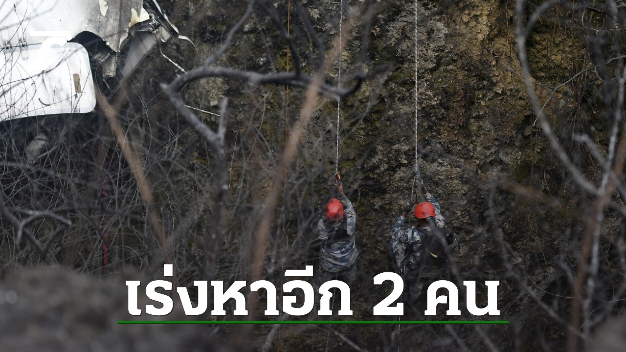 เนปาลส่งโดรน และจนท.กู้ภัยโรยตัวด้วยเชือกลงไปในช่องเขา ค้นหาผู้โดยสารอีก 2 คนที่ยังสูญหายจากเหตุเครื่องบินตกใกล้สนามบินเมืองโพคารา ยืนยันเสียชีวิตแล้ว 70 ศพ