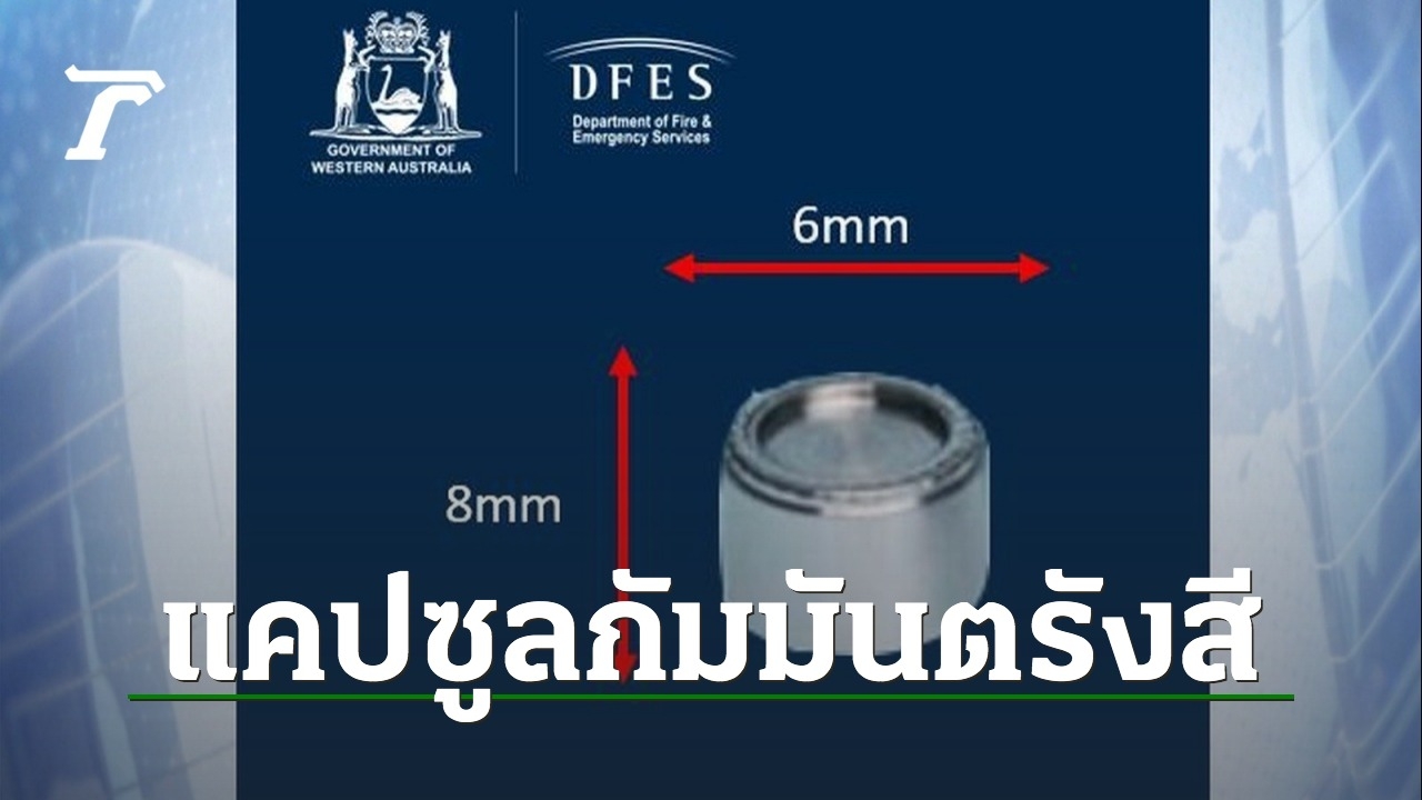 เจ้าหน้าที่ออสเตรเลียเตือนประชาชนถึงความเสี่ยงในการสัมผัสแคปซูลขนาดเล็กที่มีสารกัมมันตภาพรังสี ซึ่งสูญหายระหว่างการขนส่งในรัฐเวสเทิร์นออสเตรเลีย