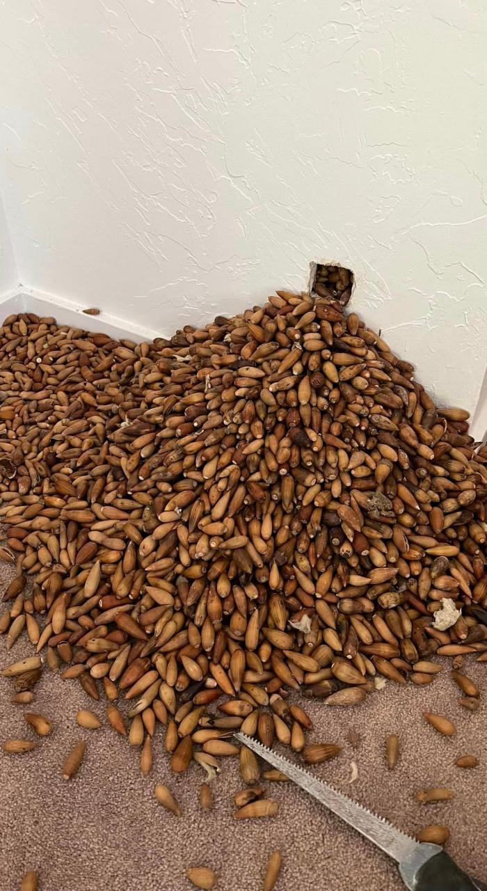 พนักงานกำจัดแมลงในสหรัฐฯ ต้องเจอเรื่องสุดสะพรึง เมื่อเจ้าของบ้านแจ้งให้ไปกำจัดหนอน แต่กลับไปพบลูกโอ๊กรวมกว่า 300 กิโลกรัมถูกซุกซ่อนอยู่ภายในฝาผนังบ้าน คาดเป็นฝีมือของนกหัวขวาน