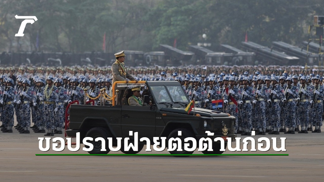 มิน อ่อง หล่าย ผู้นำรัฐบาลทหารเมียนมากล่าวต่อหน้าทหารกว่า 8,000 นายที่มาร่วมงานขณะที่รายล้อมด้วยรถถังและเครื่องยิงมิสไซล์ว่า กองทัพจะใช้มาตรการเด็ดขาดในการจัดการฝ่ายต่อต้านและกลุ่มกบฏที่ให้การสนับสนุนพวกเขา
