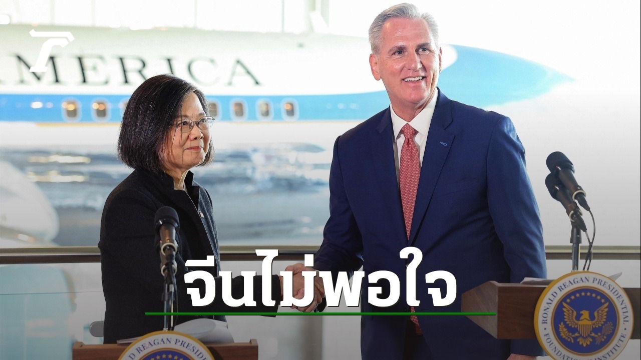 นายเควิน แมคคาร์ธี ประธานสภาผู้แทนราษฎรสหรัฐฯ พร้อมสมาชิกสภาผู้แทนราษฎร ทั้งจากพรรครีพับลิกัน และพรรคเดโมแครต ให้การต้อนรับประธานาธิบดีไช่ อิงเหวิน ผู้นำไต้หวัน ที่ห้องสมุดประธานาธิบดีโรนัลด์ เรแกน ในเมืองซิมิวัลเลย์ ที่รัฐแคลิฟอร์เนีย เมื่อวันพุธ