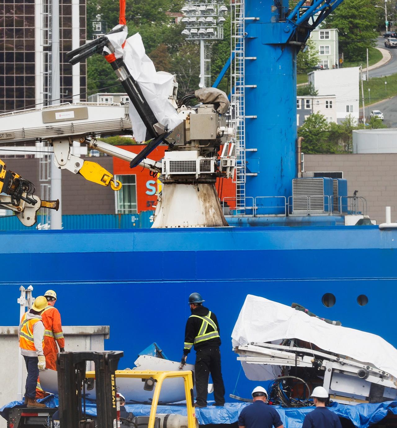 เศษชิ้นส่วนของยานดำน้ำ ไททัน ซึ่งเกิดระเบิดขณะพาผู้โดยสาร 5 คนดำลงใต้ทะเลลึกเพื่อชมซากเรือไททานิก ถูกนำขึ้นฝั่งประเทศแคนาดาแล้ว โดยมีการเผยภาพออกมาให้เห็นเป็นครั้งแรก