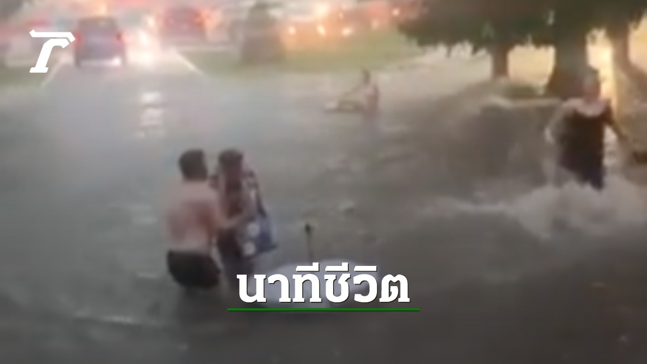 เกิดฝนตกฟ้าคะนองและมีน้ำท่วมฉับพลันที่รัสเซีย ขณะที่ผู้คนต่างกำลังพากันวิ่งหลบฝนและหนีน้ำท่วม ได้เกิดเหตุการณ์สุดระทึกขึ้น เมื่อฟ้าผ่าเปรี้ยงลงบนถนน ทำให้มีผู้หญิงคนหนึ่งได้รับบาดเจ็บ