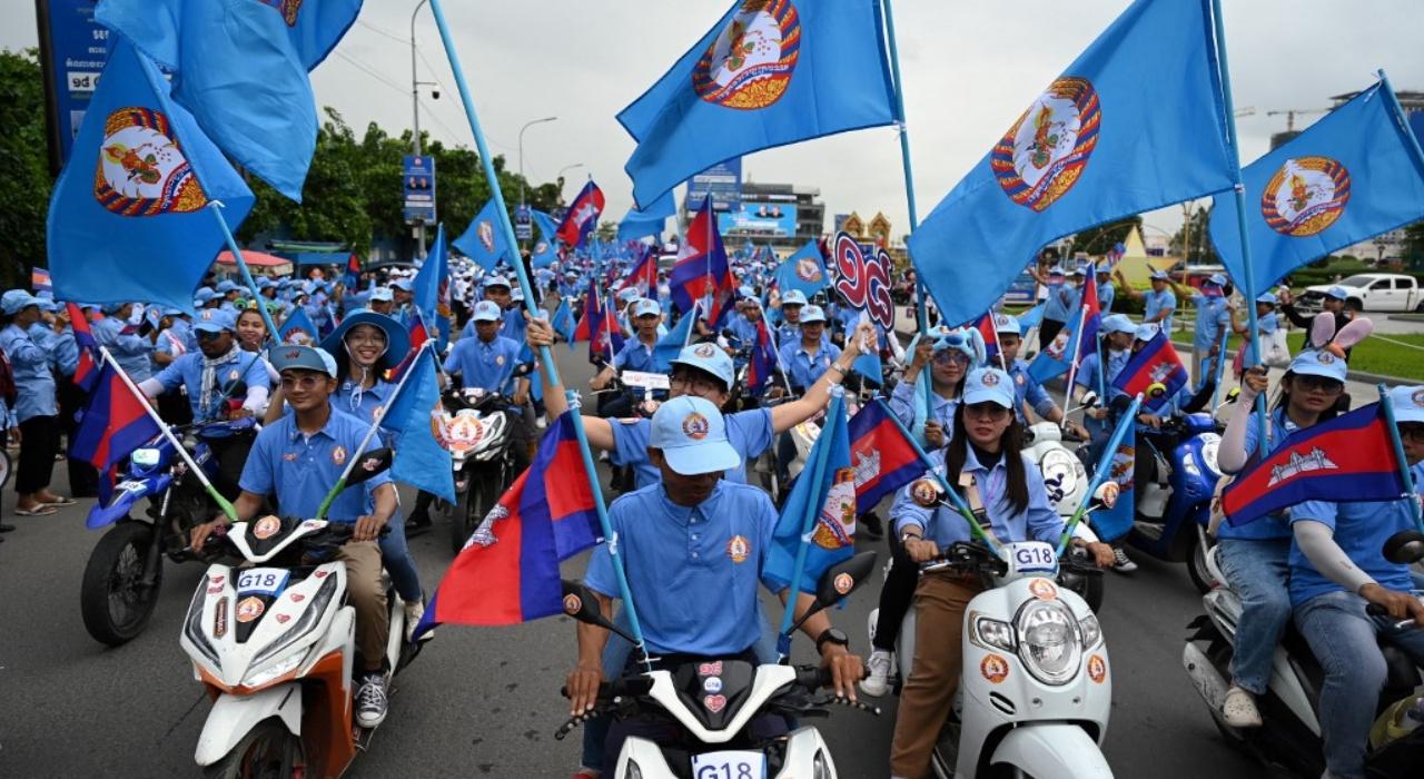 ฮุน มาเนต บุตรชายของนายกรัฐมนตรี ฮุน เซน แห่งกัมพูชา ร่วมการชุมนุมและปราศรัยหาเสียงเพื่อพรรคซีพีพี เป็นครั้งสุดท้าย ในกรุงพนมเปญ ก่อนถึงการเลือกตั้งทั่วไปในวันพรุ่งนี้