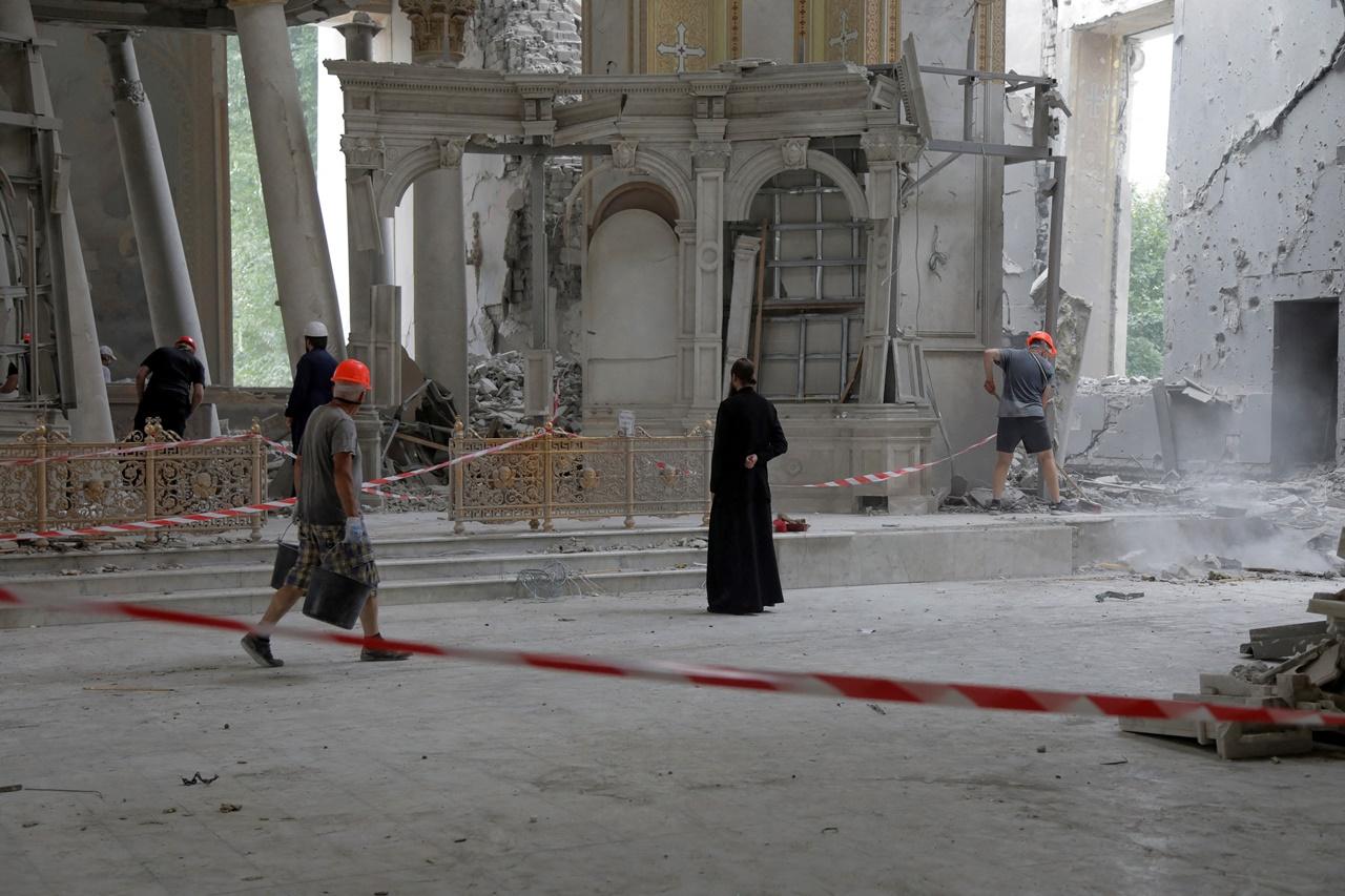 รัสเซียอ้างว่าโจมตีโอเดสซา เนื่องจากสถานที่แห่งนี้กำลังถูกใช้เพื่อเตรียมการโจมตีก่อการร้าย และกล่าวโทษว่า การโจมตีโบสถ์ใหญ่ดังกล่าวเป็นฝีมือของฝ่ายยูเครน ด้านประธานาธิบดี โวโลดีเมียร์ เซเลนสกี แห่งยูเครน ประกาศกร้าวว่าจะมีการโจมตีตอบโต้