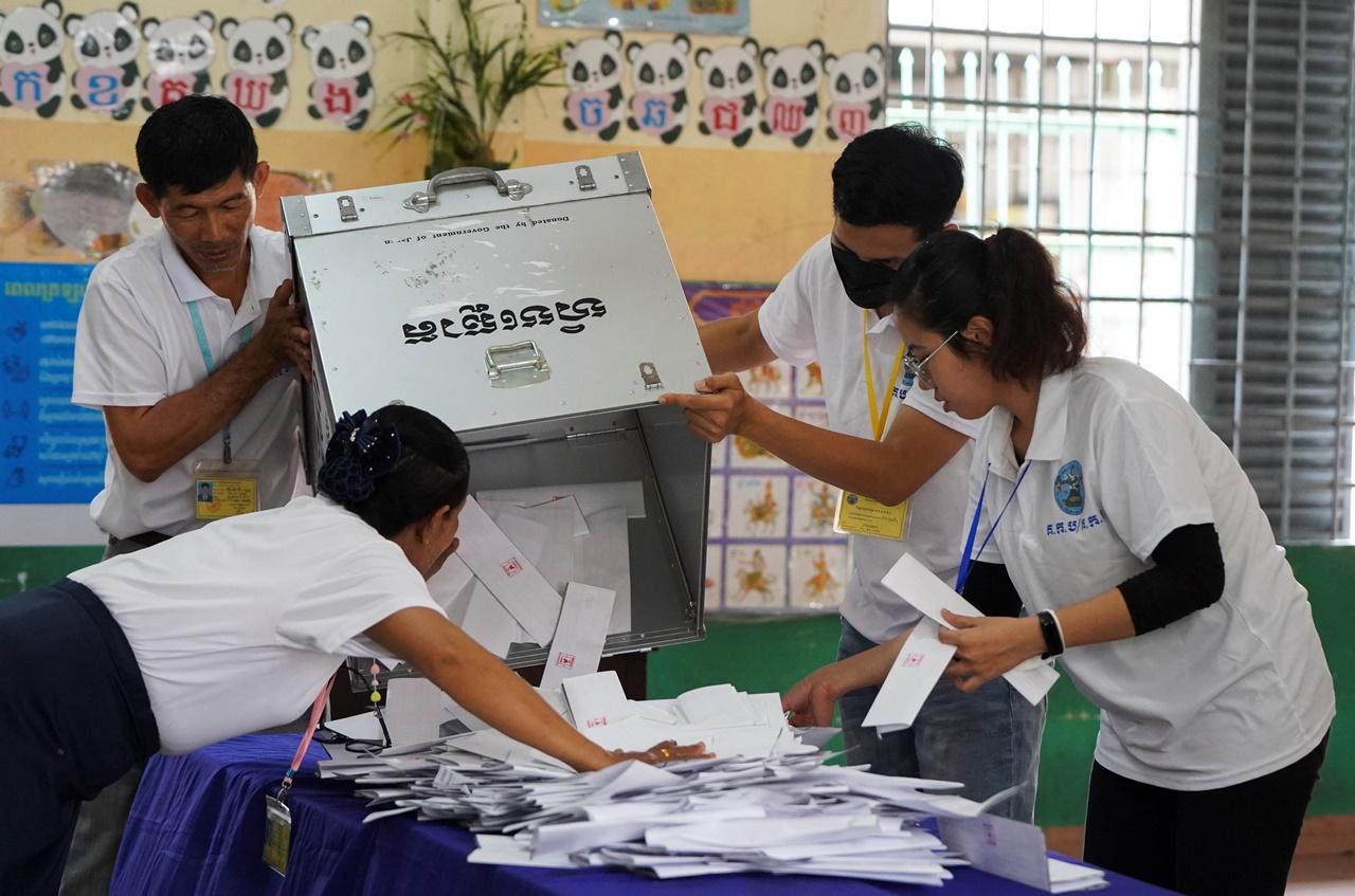 การเลือกตั้งเมื่อวันอาทิตย์ ถือเป็นการชิงชัยโดยไร้คู่แข่งของพรรค CPP กับอีก 17 พรรคที่แทบจะไม่มีใครรู้จัก หลังจากรัฐบาล ฮุน เซน ปราบปรามฝ่ายตรงข้ามทางการเมืองอย่างหนักตลอดหลายปีที่ผ่านมา จนฝ่ายค้านและแกนนำหลายร้อยคนต้องระเห็จไปอยู่ต่างประเทศ โดย CPP ได้คะแนนเสียงไป 84% จากผู้มาใช้สิทธิ 8.1 ล้านคน